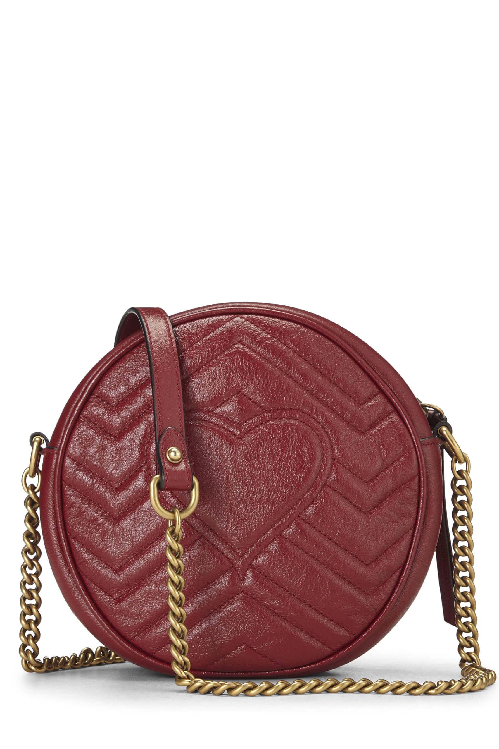 Gucci, Red Leather GG Marmont Round Shoulder Bag Mini, Red