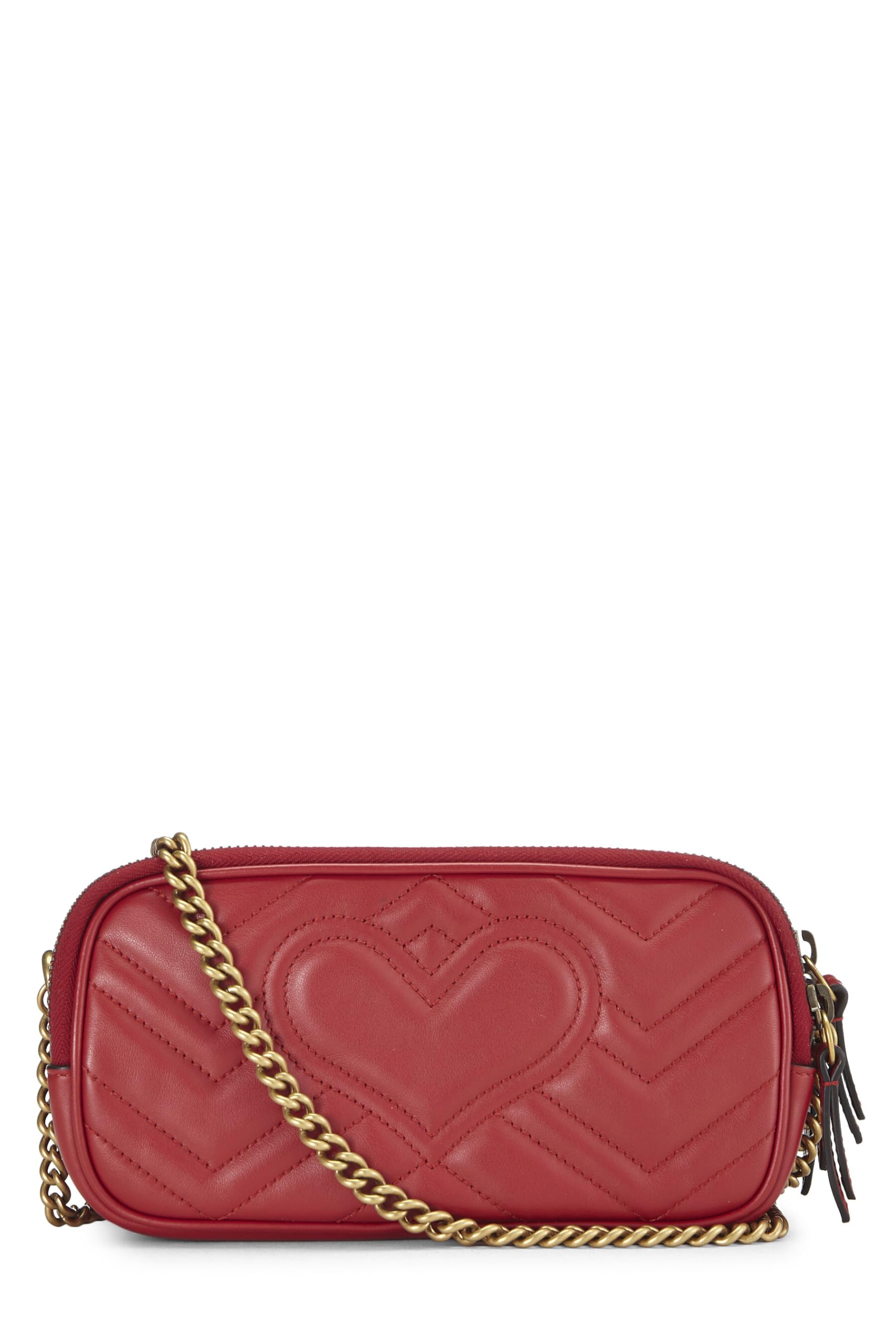 Gucci, Red Leather GG Marmont Shoulder Bag, Red