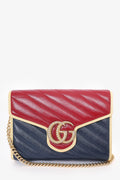Gucci Red/Navy Quilted Marmont Wallet On Chain