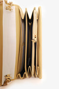 Gucci Red/Navy Quilted Marmont Wallet On Chain. Front fold-over flap with snap button closure. Bill fold pockets on front and back of interior. 3 interior sections with single zip closure pouch in the middle. 8 card slots on front and back of interior. Tonal stitching. Gold-tone hardware.