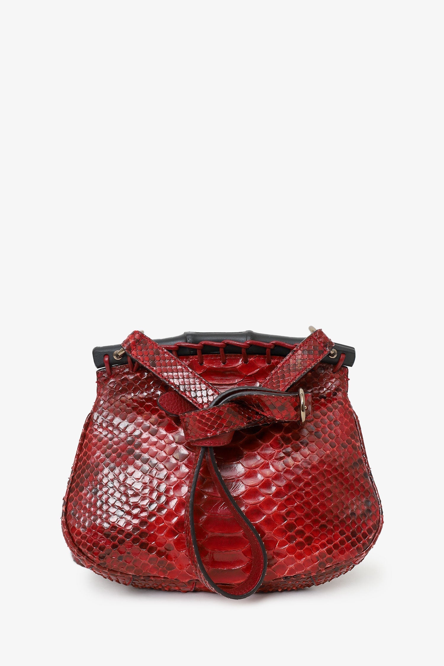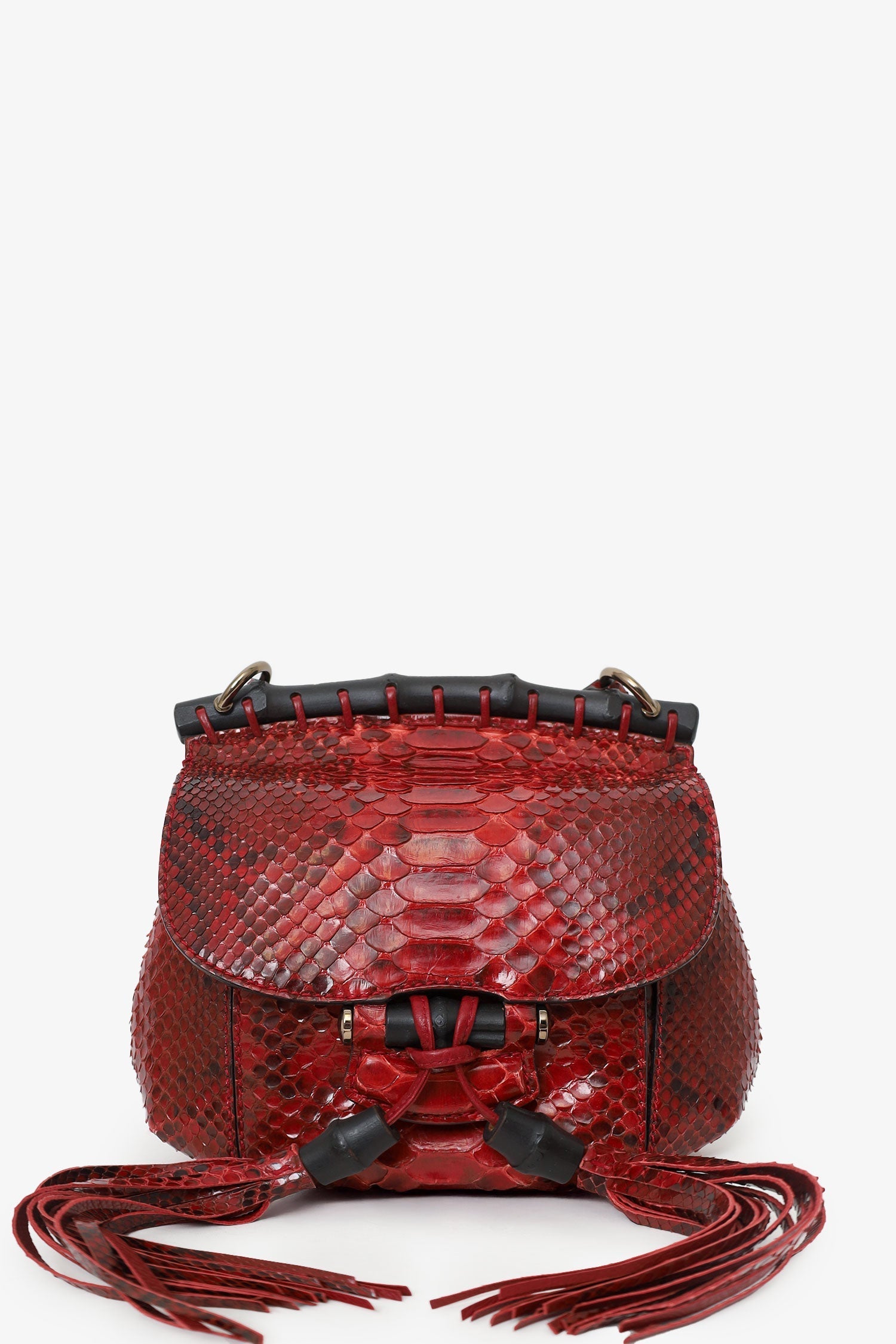 Gucci Red Python Small Nouveau Fringe Shoulder Bag