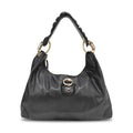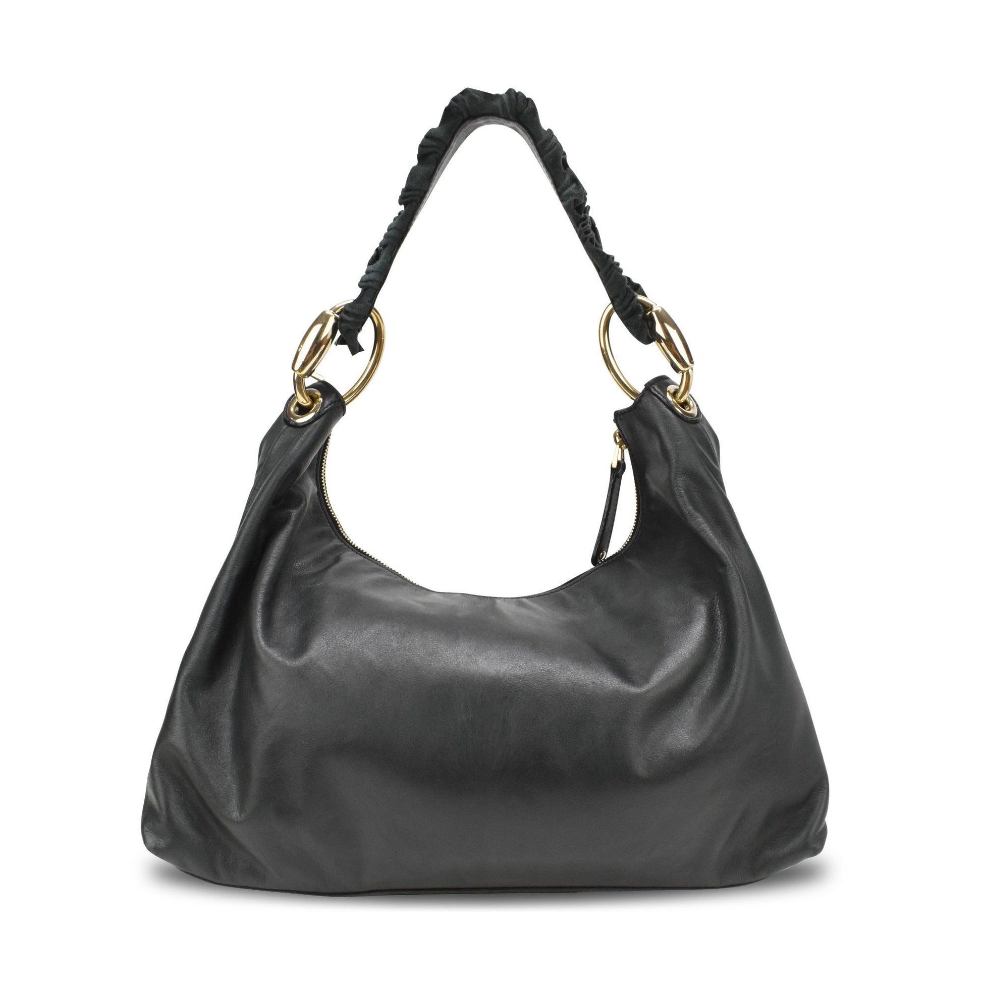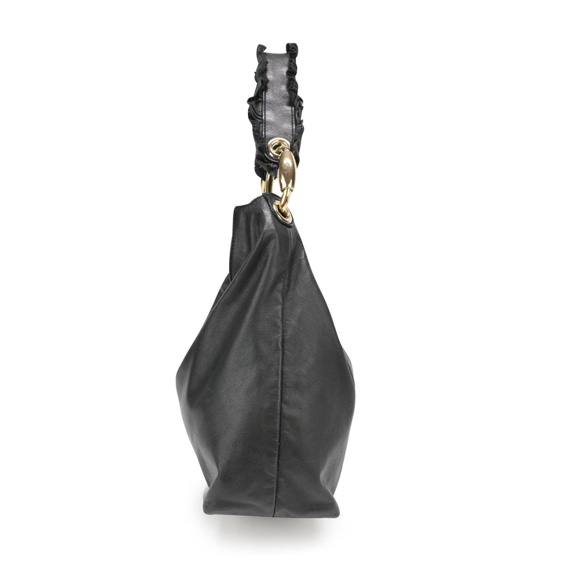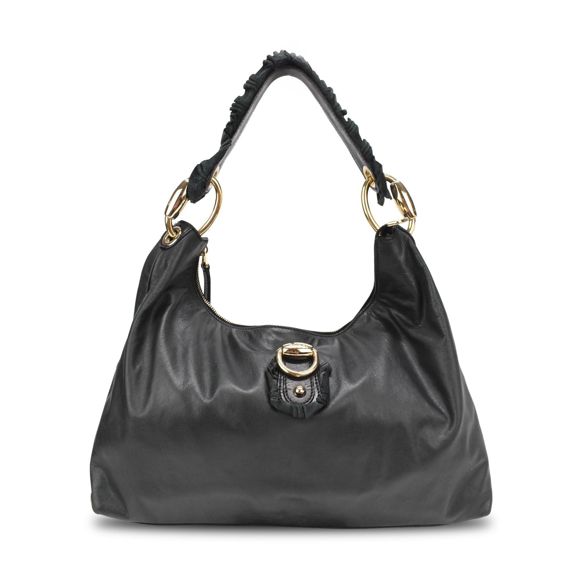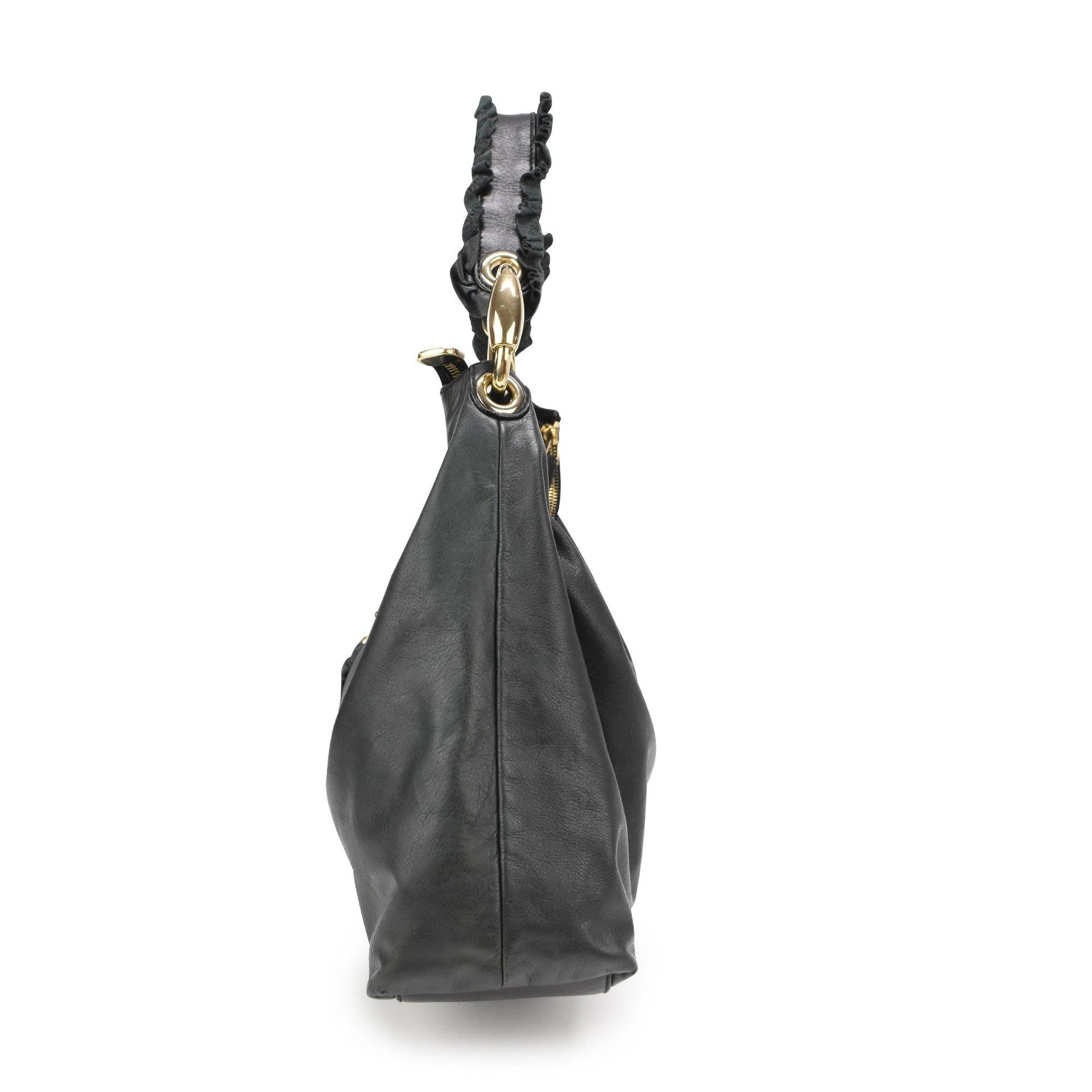 Gucci Bag in dark green leather with a one-shoulder strap, circle and ruffled detailing. Features a logo clasp detail on the front, top zip closure in gold hardware, inner canvas lining and a zip pocket.