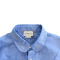 Gucci Button-Down Shirt in light blue cotton. The collar has a "Le plus Serre" white anchor style embroidered on the collar with a white shell button-down closure.