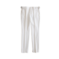 Gucci slim-fit trousers in a white cotton blend with silver buckle hardware at the waist.