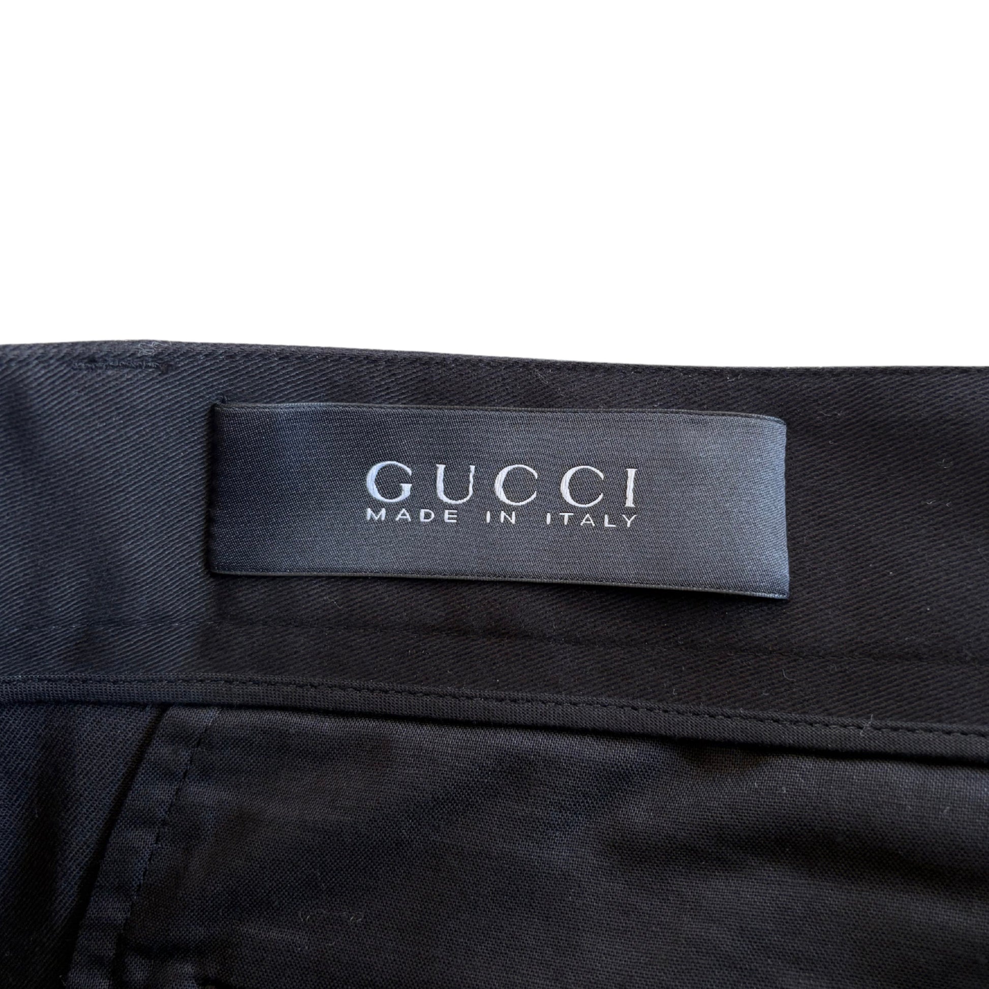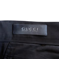 Gucci pre-cuffed slim-straight trousers in black cotton twill with button fly and adjustable waist straps.