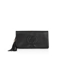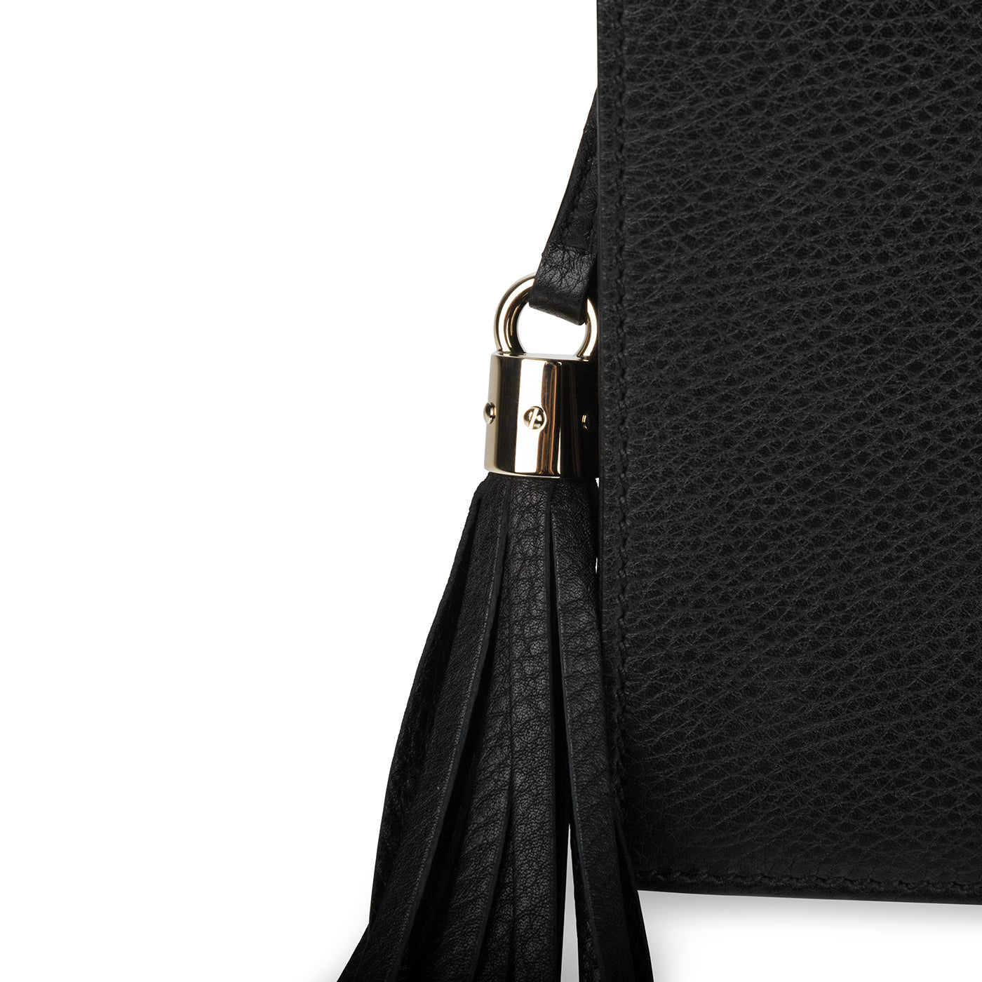 Carefully crafted from grained leather, the beloved Gucci Soho is now available in a clutch. The perfect evening companion to hold all your essentials in style, the Soho clutch is sleek, stylish and sophisticated. Luxurious and versatile, this bag is your ultimate go-to for a night out. Featuring the Soho's signature fringe tassel, prominent GG stitched front logo and durable leather, this clutch is a true must have for any Gucci lover. The perfect compliment to anything in your wardrobe, the Soho clutch is a purchase you won't regret.