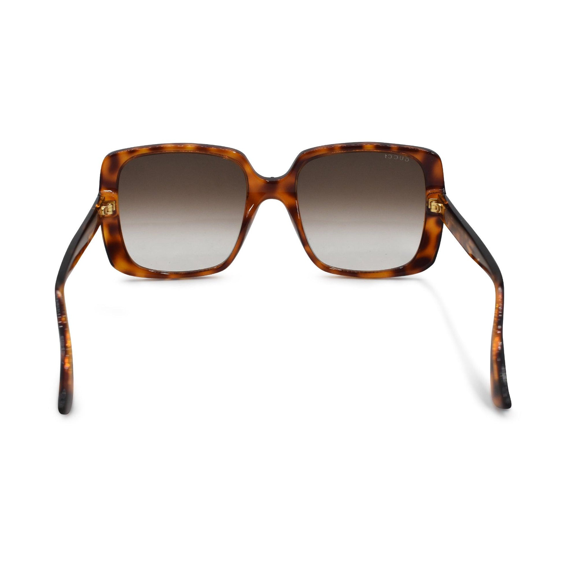 Gucci oversized square sunglasses in orange tortoiseshell acetate with gold 'GG' logo on the arms.