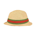Gucci fedora hat in beige straw with a red and green racing stripe trim.