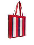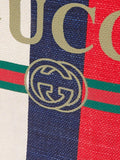 Drawing influence from the flowing dresses of Indian dancers, Gucci's large print tote is an eye-catching update on a weekend bag. Red, blue and white-striped baiadera linen-canvas sits within red leather and has red leather straps, while the brand's logo is printed in the centre and features the iconic GG beneath it. The bag is lined with red fabric and has a single zip pocket.