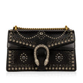 So pretty much, any fashion lover with a soft spot for Gucci needs this bag in their life. Carefully crafted from smooth black leather, this small Dionysus features black and ruthenium studded embellishment throughout - making it is the perfect accessory for basically any and every occasion. The perfect piece to dress up or down, this Dionysus is effortlessly chic in the coolest, edgiest way possible. Your new best friend that you’ll never leave the house without, this studded baby is the ideal companion you’ll bring along wherever you go. Night out? Running errands? Lunch with your girlfriends? No matter the event or occasion, Miss Dionysus is always the best plus one. Balancing refined elegance with a youthful and playful aesthetic, this rock n’ roll Dionysus remains sleek and sophisticated while making heads turn wherever she goes. An instant classic the moment it hit the shelves, the Dionysus has become a Gucci timepiece that will never go out of style. A true must-have for any young woman with a fashion-forward sense of style and a love for luxury, this studded Gucci Dionysus isn’t just a want - she’s a need.