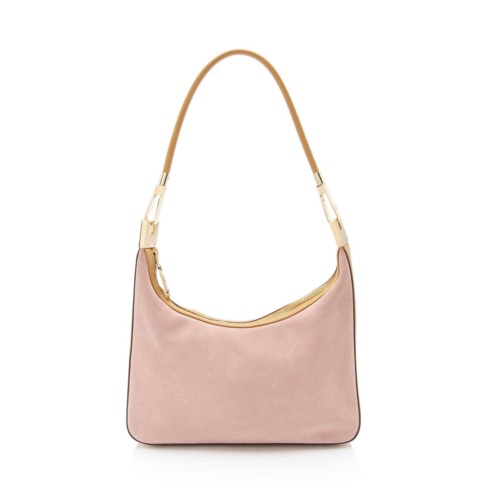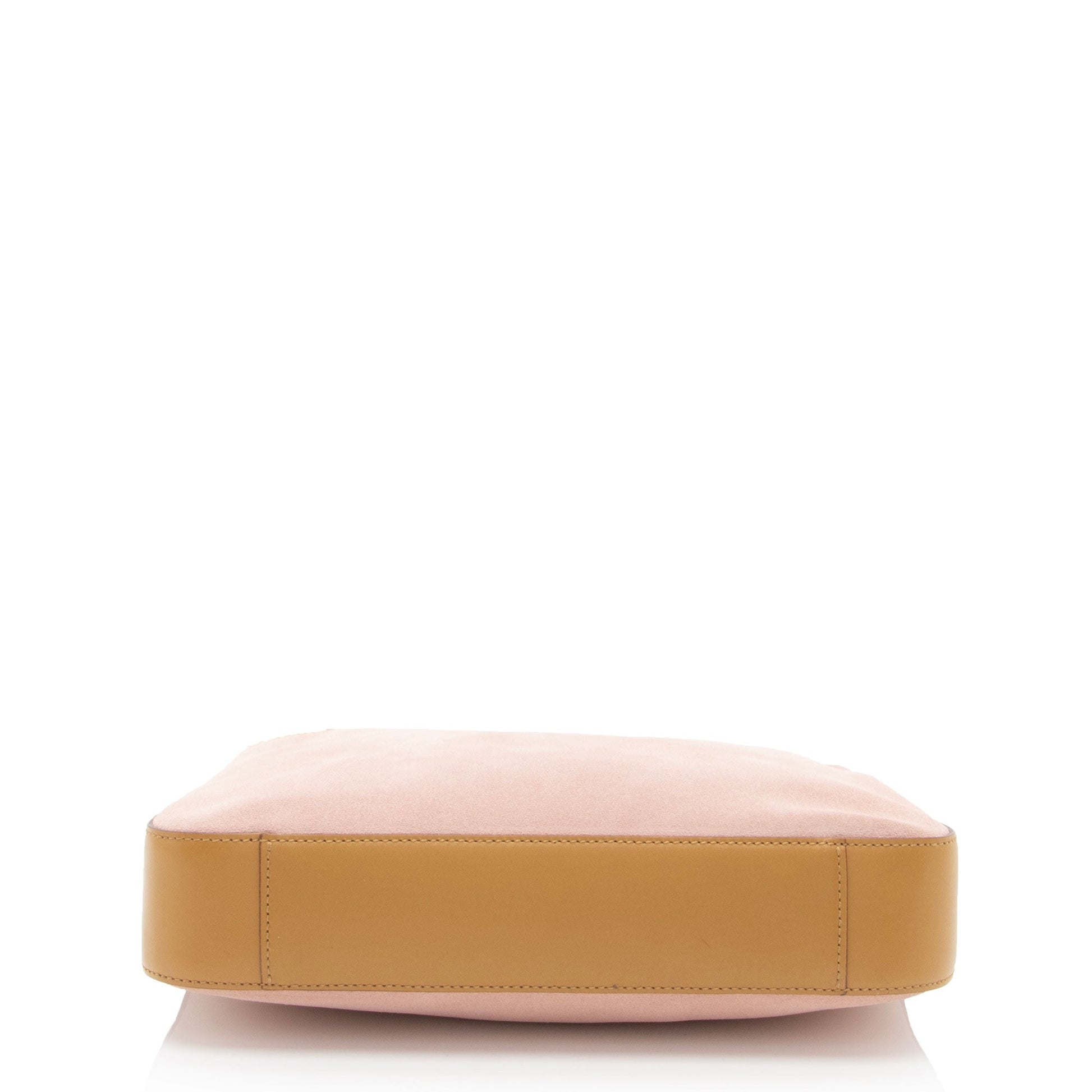 Condition Notes: Light marks and minor darkening throughout exterior suede. Light scuffs and minor marks throughout exterior leather trim and handle. Minor surface scratches to hardware.
