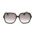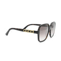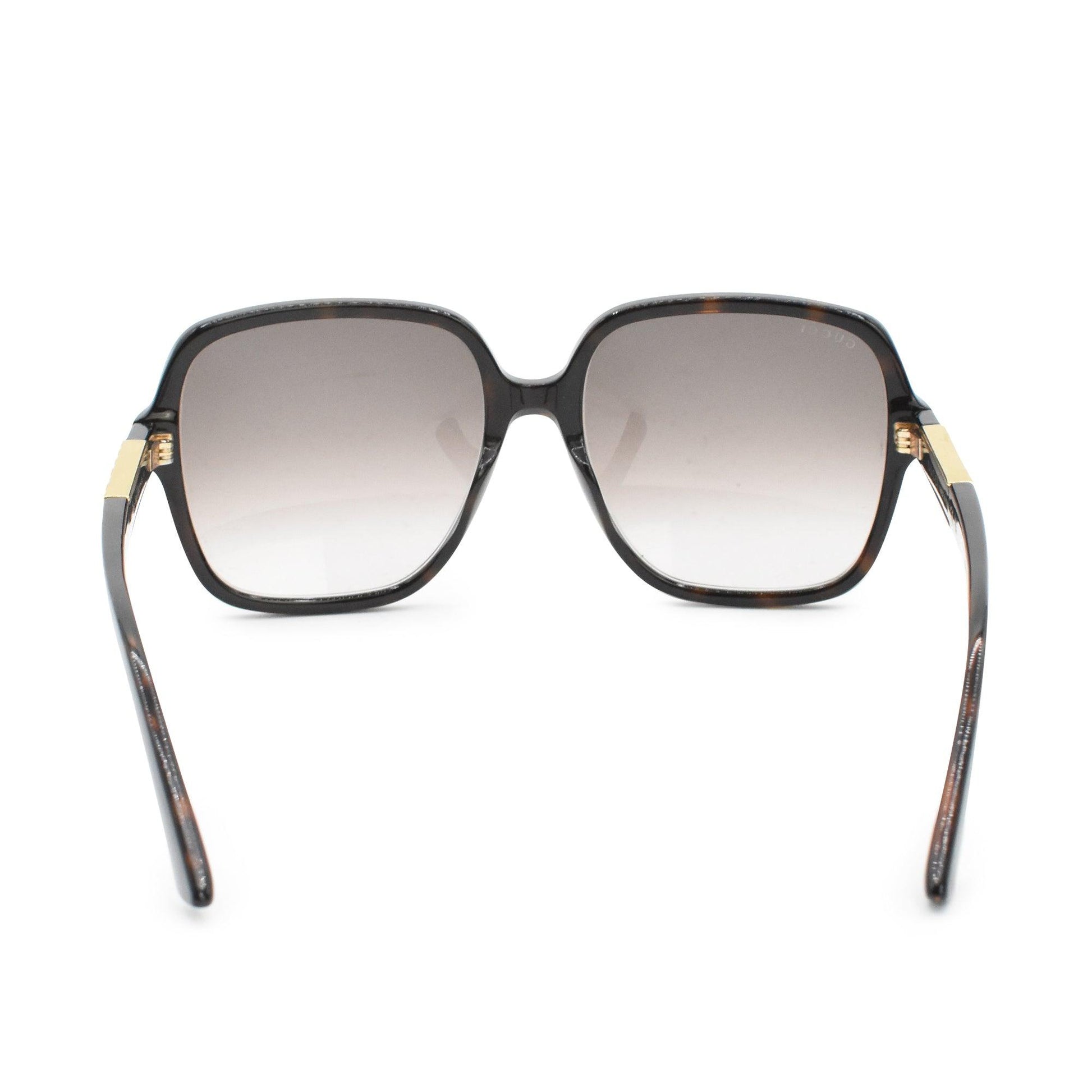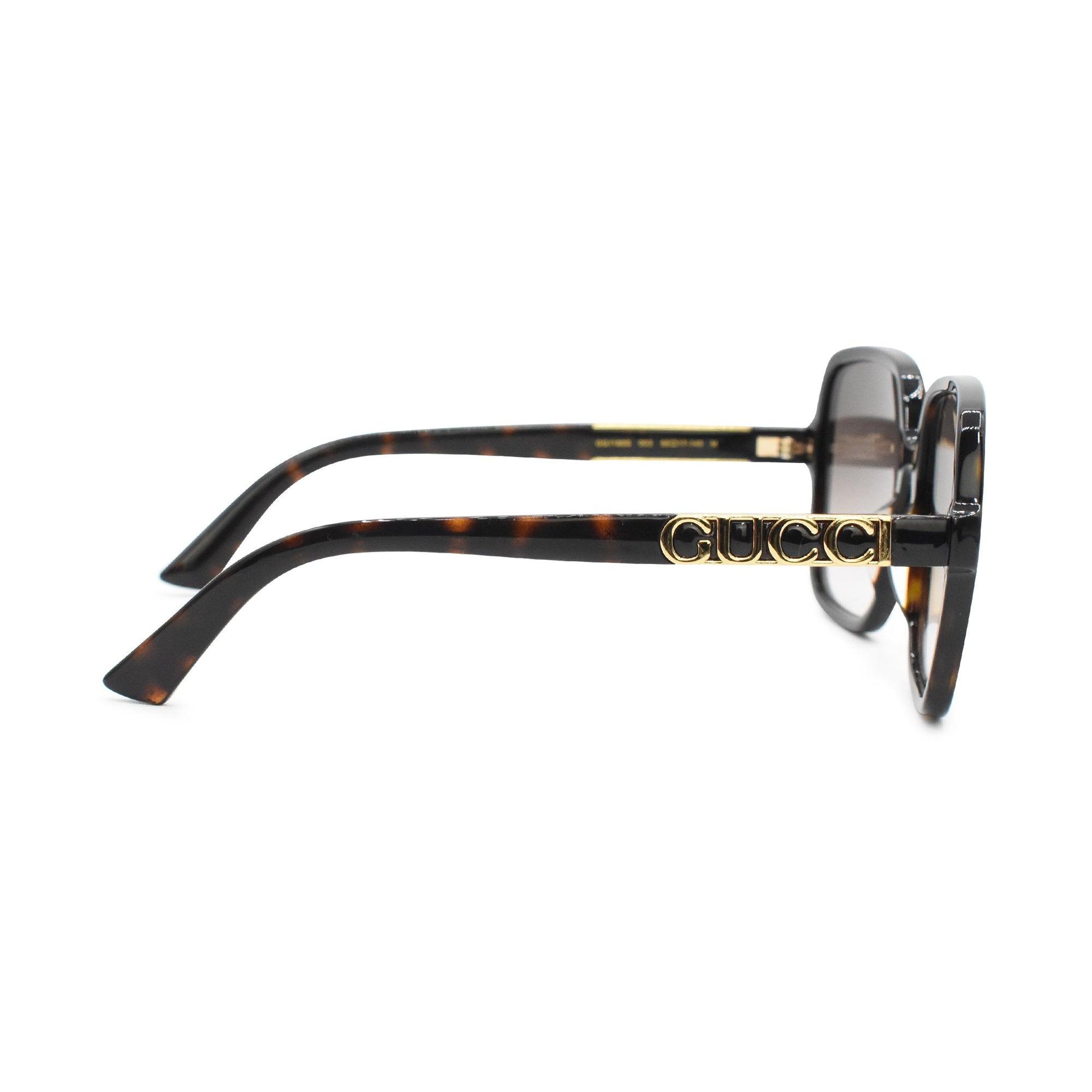 Gucci sunglasses in dark tortoise acetate with an oversized brown square lens and gold logo hardware on the arms.