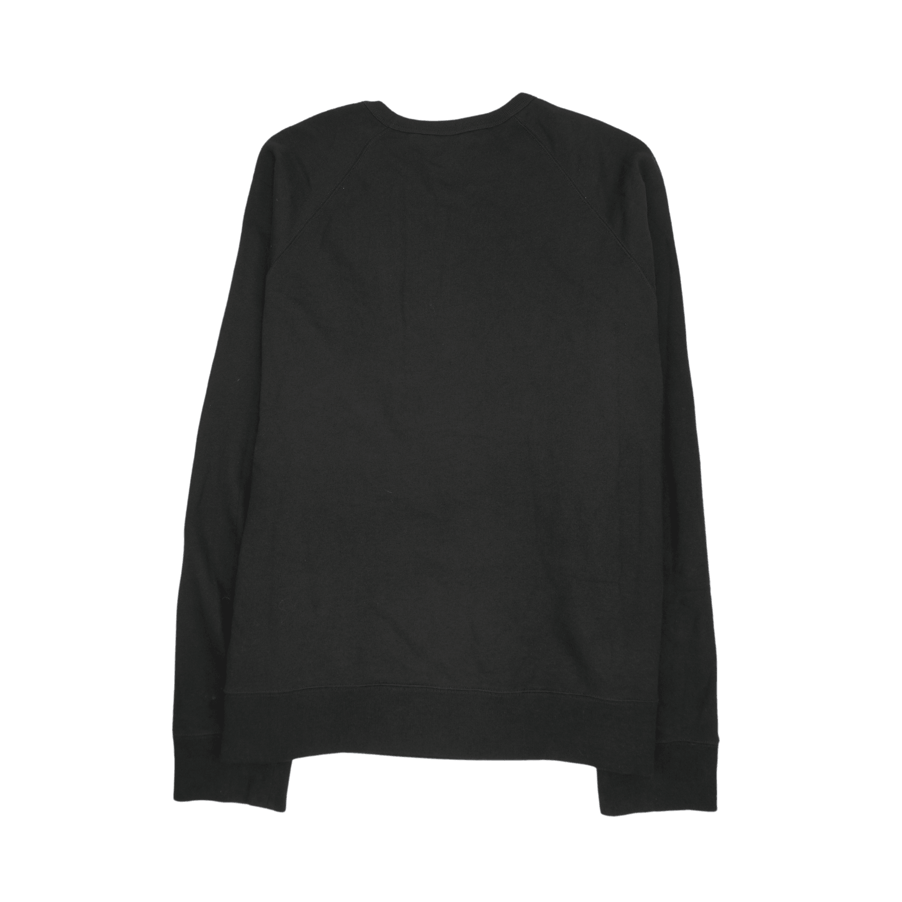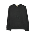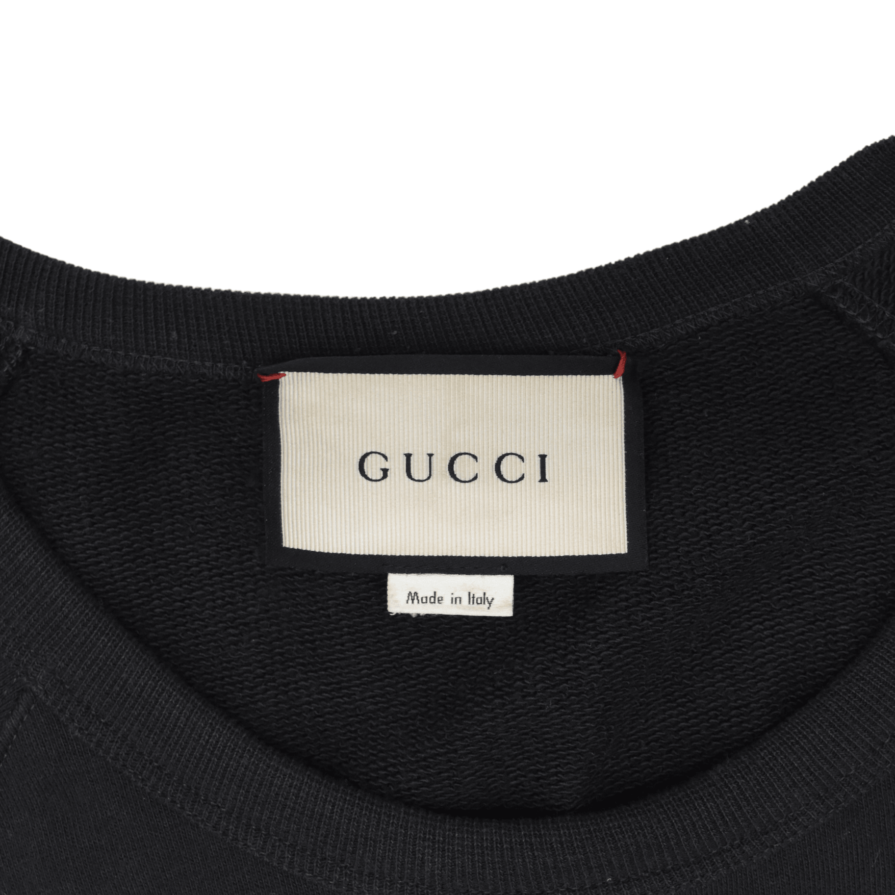 Gucci crewneck sweater in black cotton with a tonal bee and text embroidery on the front.