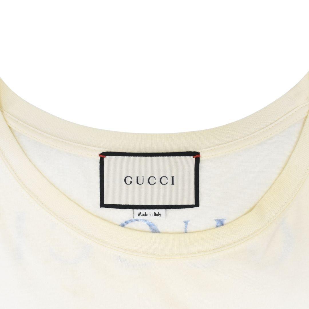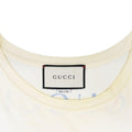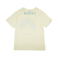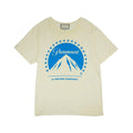 Gucci short-sleeve t-shirt in cream cotton with a large blue 'Paramount' logo on the front and 'Gucci' logo on the upper back.