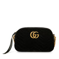 Gucci presents its highly acclaimed Camera Crossbody. The Camera Crossbody is also accented with antique gold hardware, giving the handbag an irrevocable air of sophistication. Ideally worn in the evening, the Velvet Camera Crossbody is perfect for styling with any and every evening outfit you can conjure.