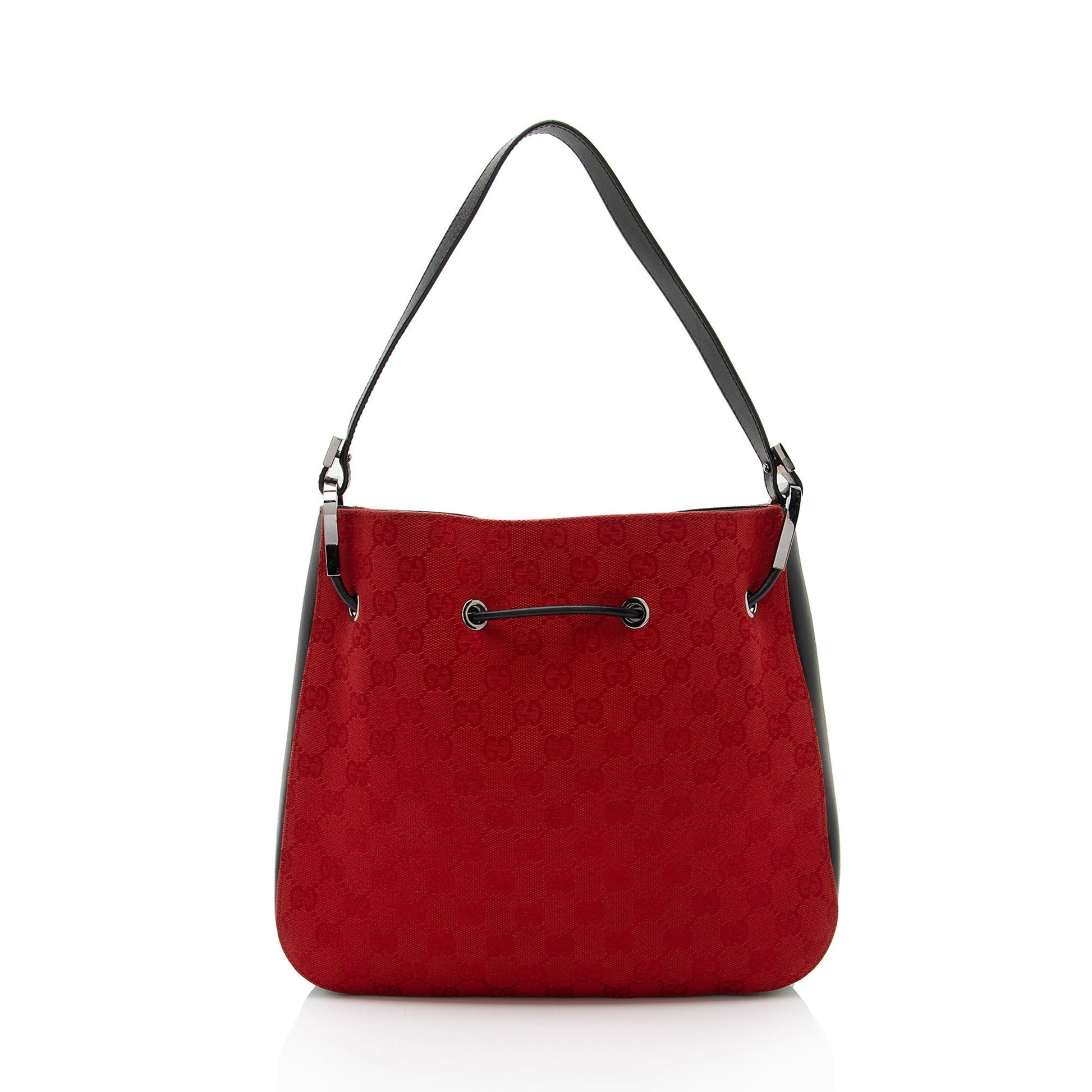 Gucci Vintage GG Canvas Drawstring Shoulder Bag (SHF-9kJYvQ)