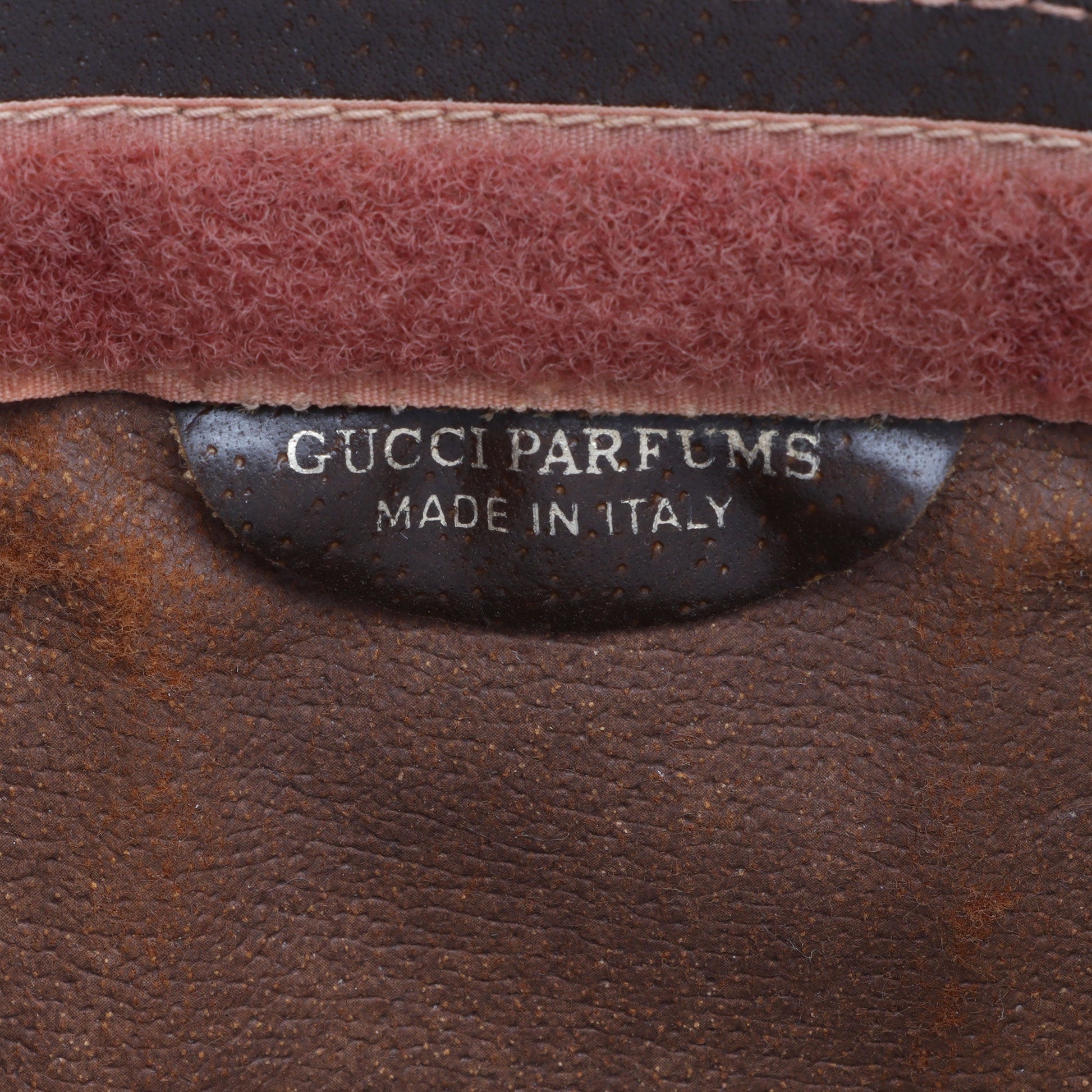 Condition Notes: Light loss of structure to exterior. Light scuffs and minor creasing throughout exterior leather trim. Light cracking and wear throughout exterior casing. Moderate wear throughout interior. Vintage odor.