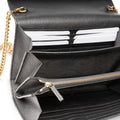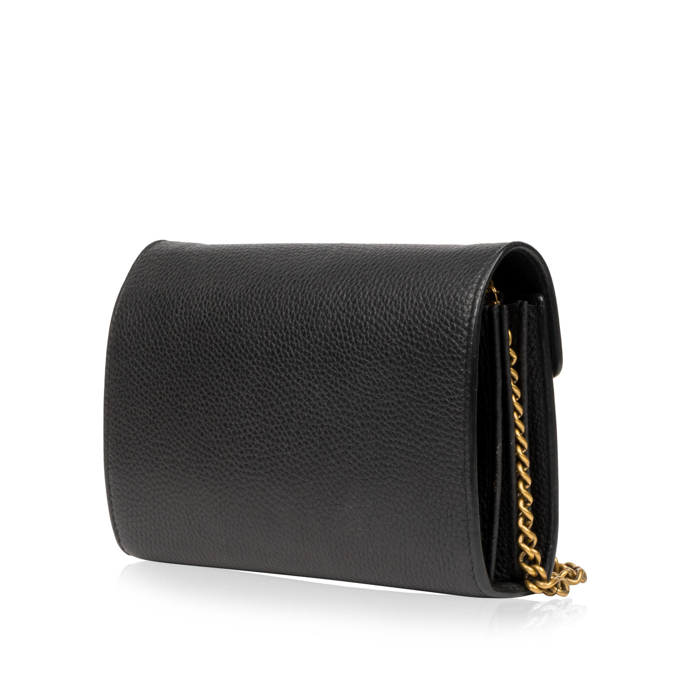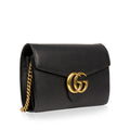 Crafted from black grained leather, this stunning Gucci Wallet-On-Chain is an absolute must-have for any woman with a love for luxury. Sleek, stylish and sophisticated, this surprisingly spacious bag is the perfect compliment to anything you have in your wardrobe. The silhouette gives the illusion that this piece is small and compact, but au contraîre - the interior features three compartments, a zip pocket, two slip pockets and sixteen card slots. Hold all your essentials comfortably inside while remaining effortlessly elegant. The perfect accessory to take you from day to night, the Gucci WOC is that one piece you'll use for any and every occasion. A timeless accessory you'll have forever, this bag is a well-worthy addition to any luxury handbag collection.