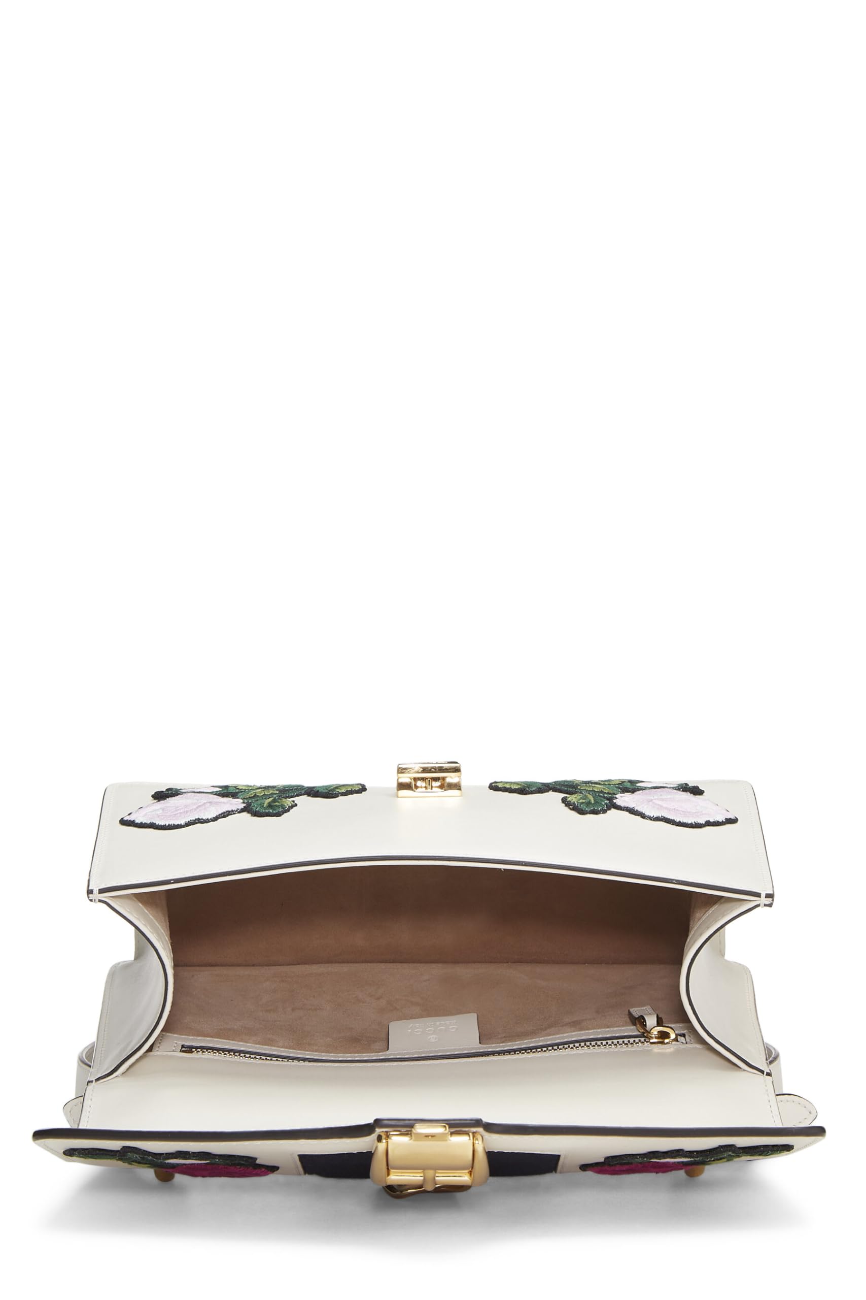 Gucci, White Floral Embroidered Leather Sylvie Shoulder Bag Small, White