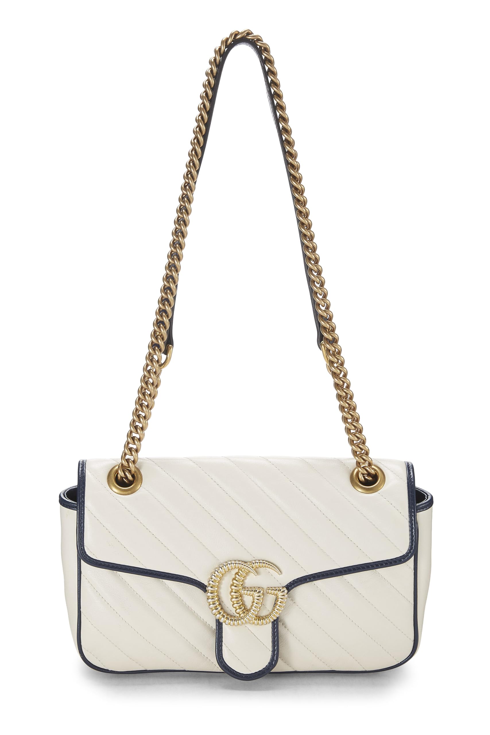 Gucci, White Leather Torchon GG Marmont Shoulder Bag Small, White