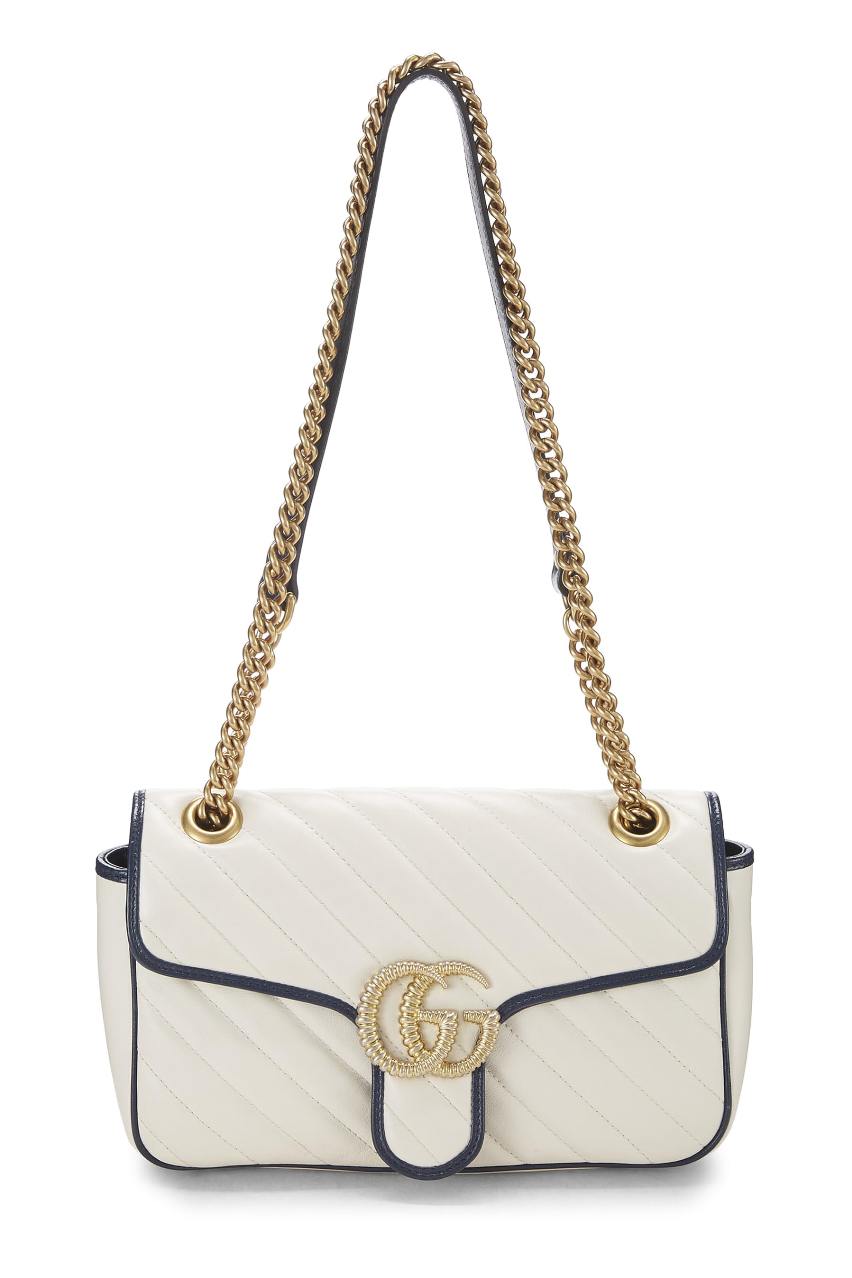 Gucci, White Leather Torchon GG Marmont Shoulder Bag Small, White