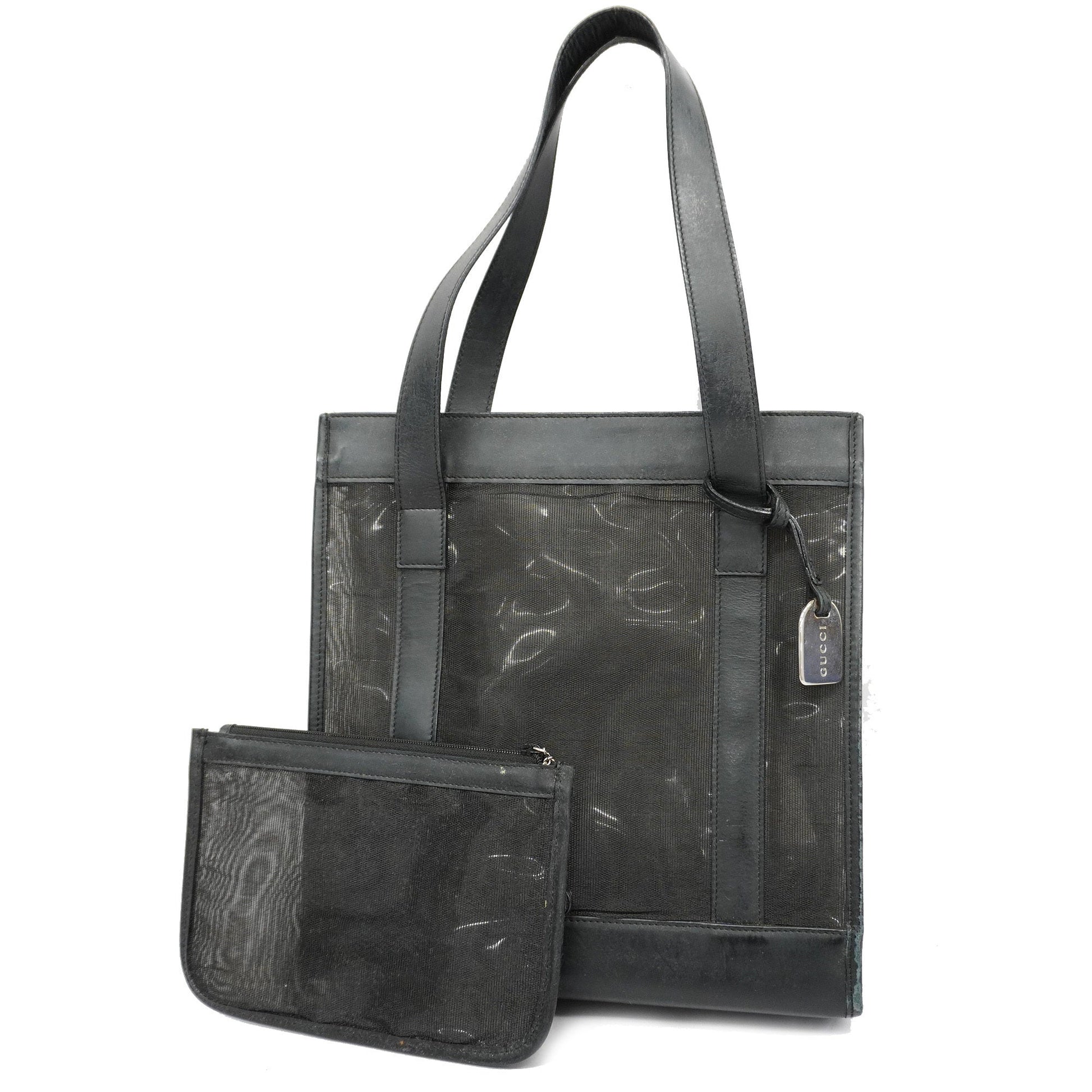 GUCCI 002 1705 0405 Women's Mesh,Leather Tote Bag Black