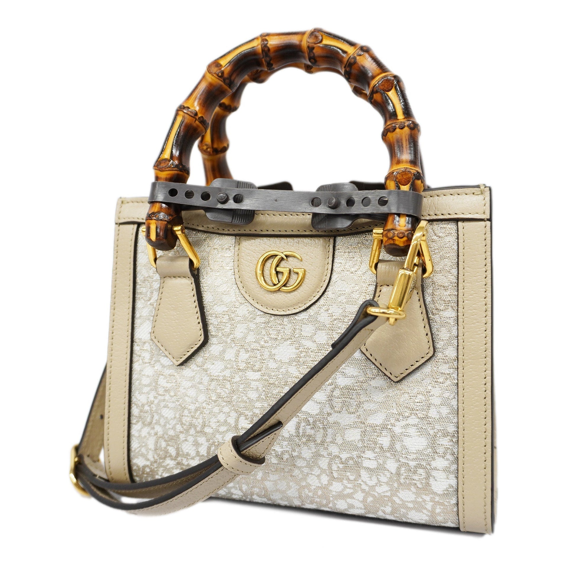 Gucci 2way Bag Diana 702732 Leather,Canvas Handbag,Shoulder Bag Grayish
