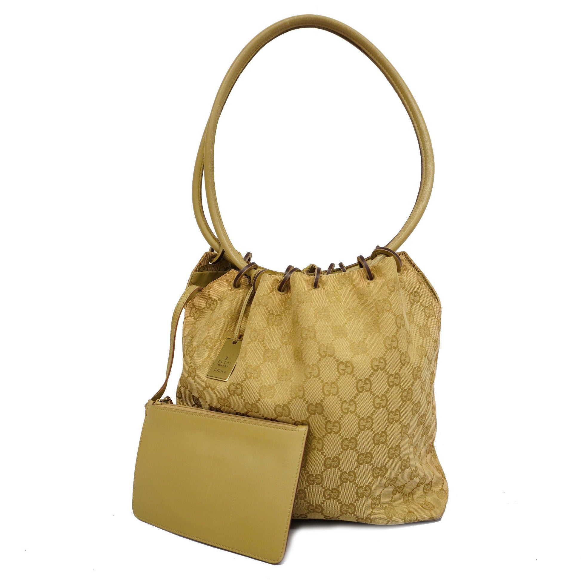 Gucci 90644 Women's GG Canvas Shoulder Bag Beige