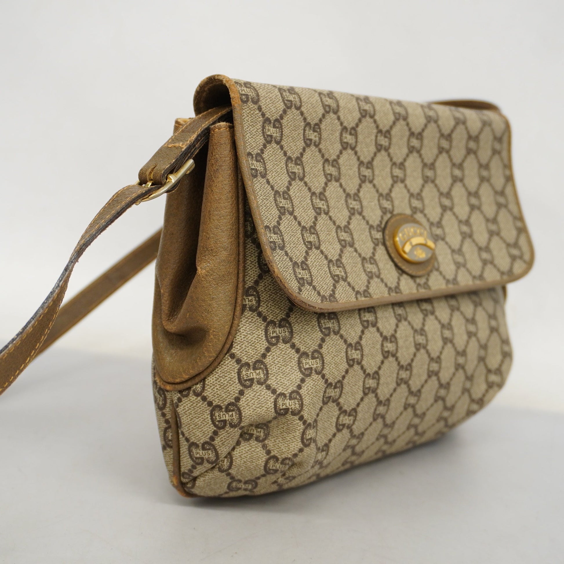GUCCI GG Plus 122754 PVC Shoulder Bag Beige,Brown