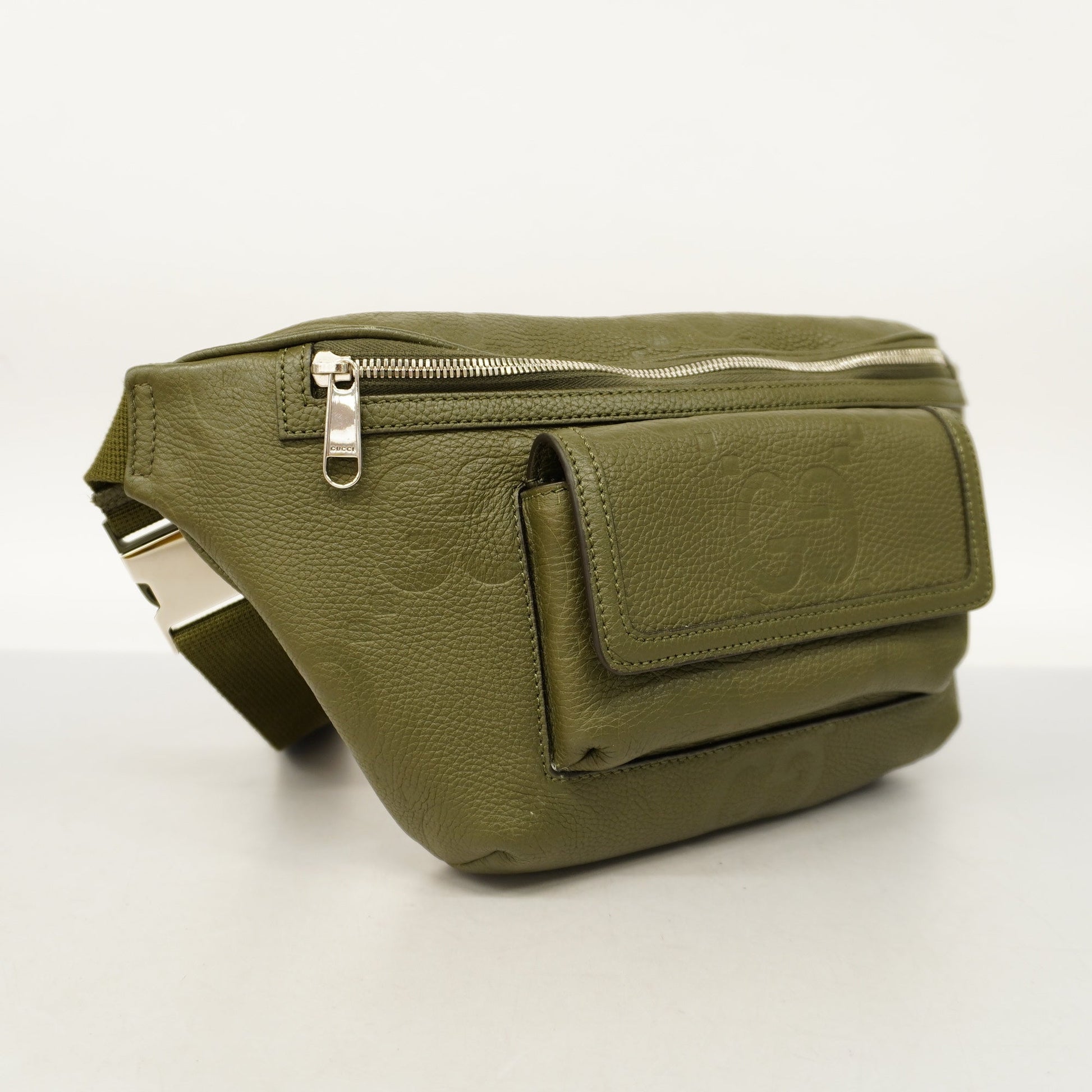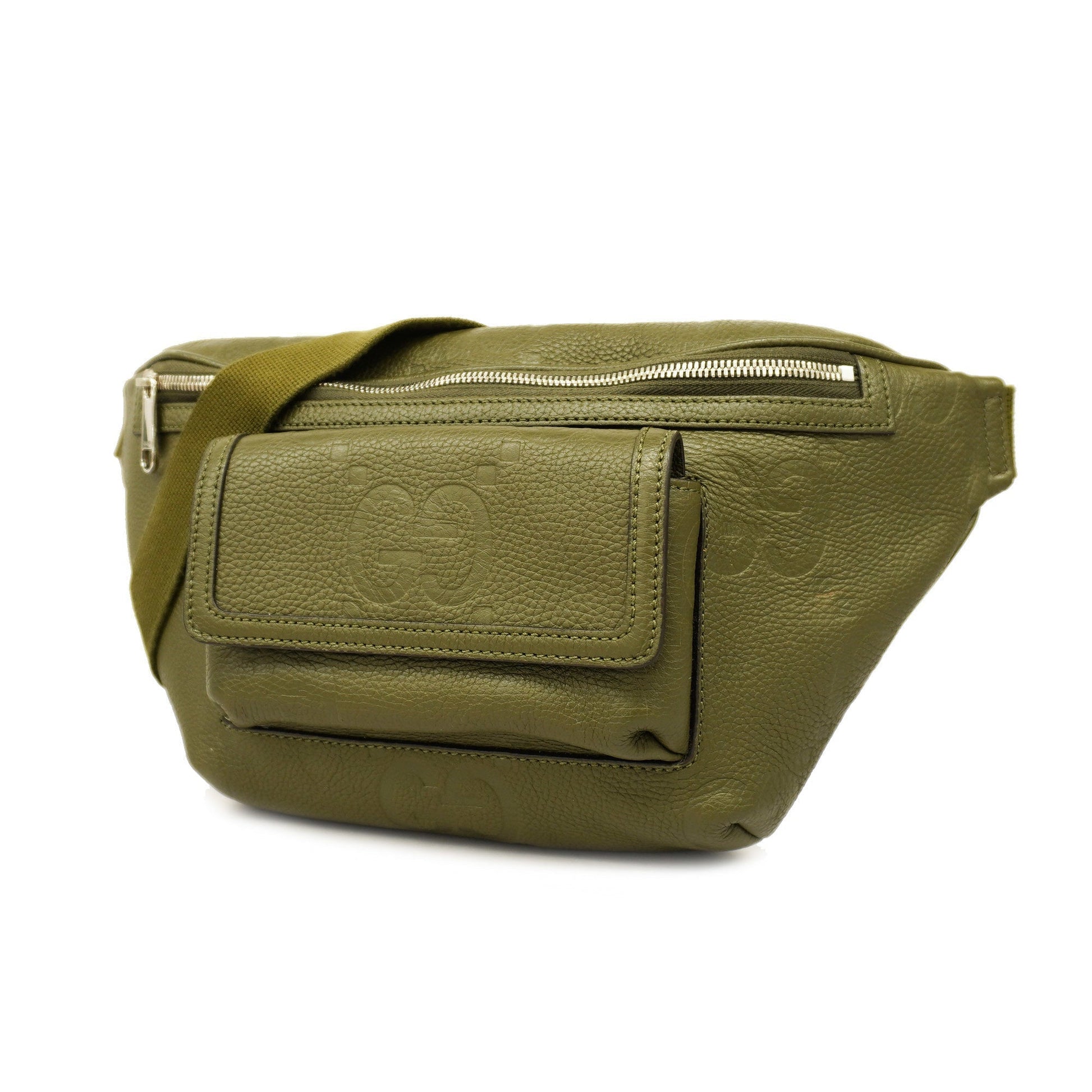 GUCCI Jumbo GG 645093 Men's Leather Sling Bag Khaki