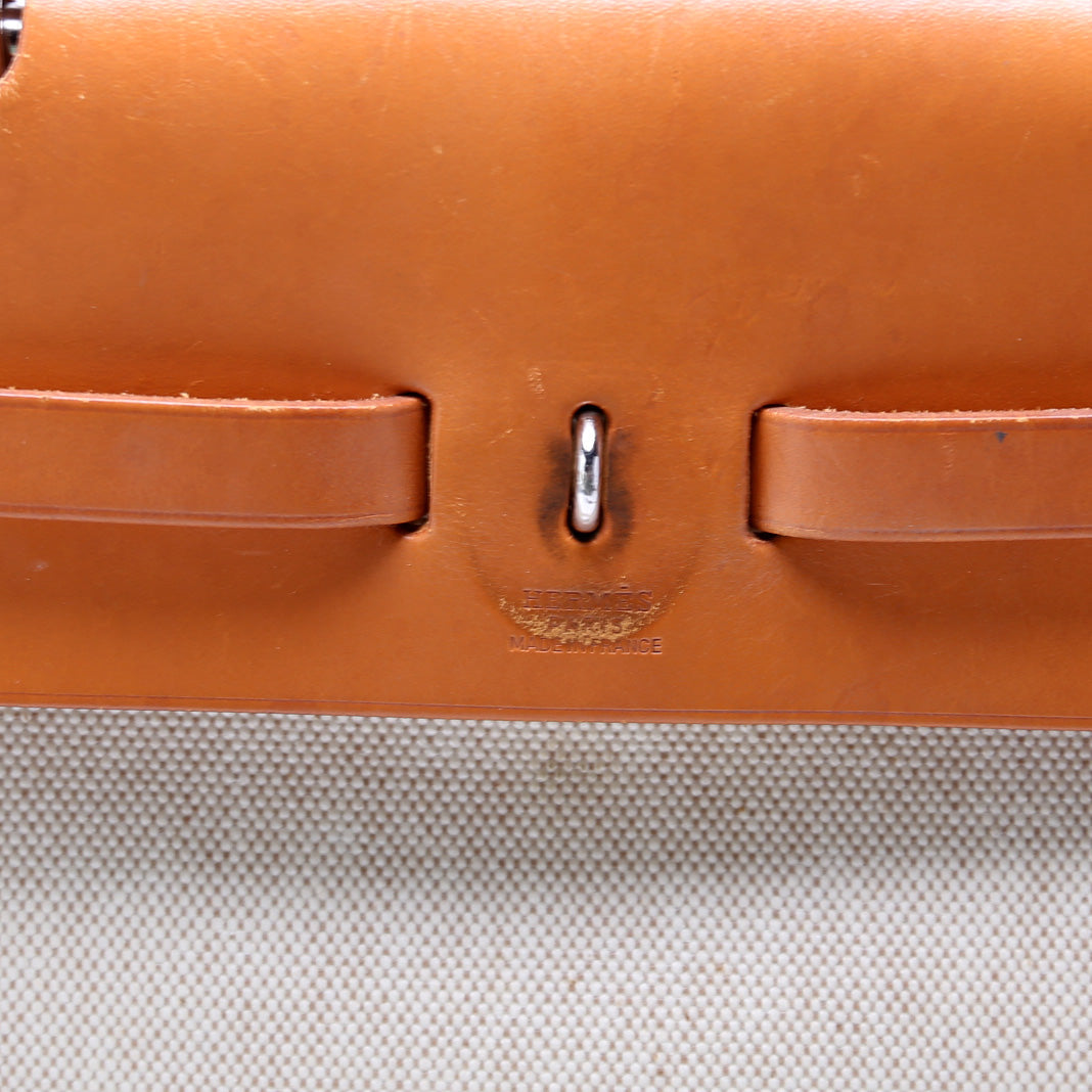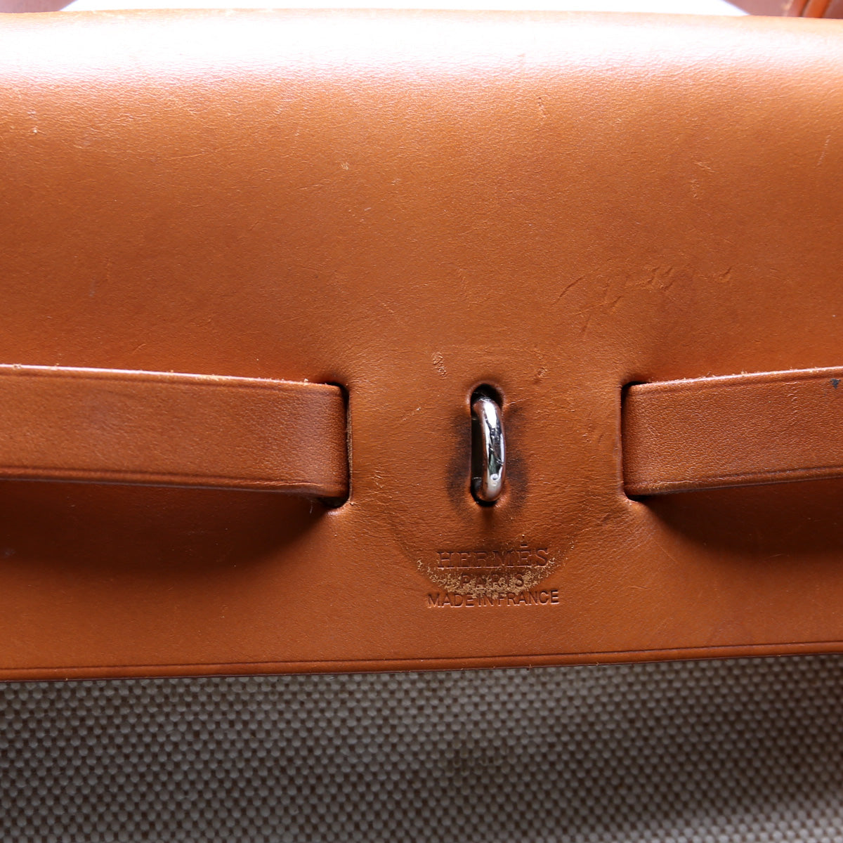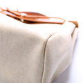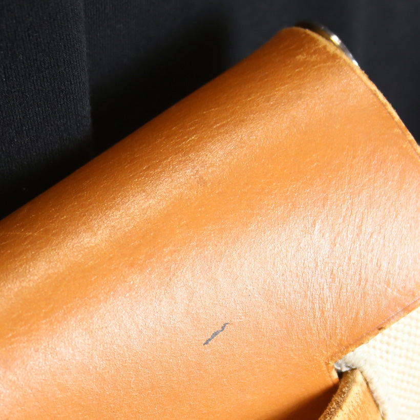 Exterior: The exterior canvas has minor discoloration throughout. The leather flat has scuffs and wear throughout.