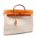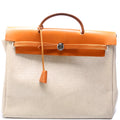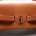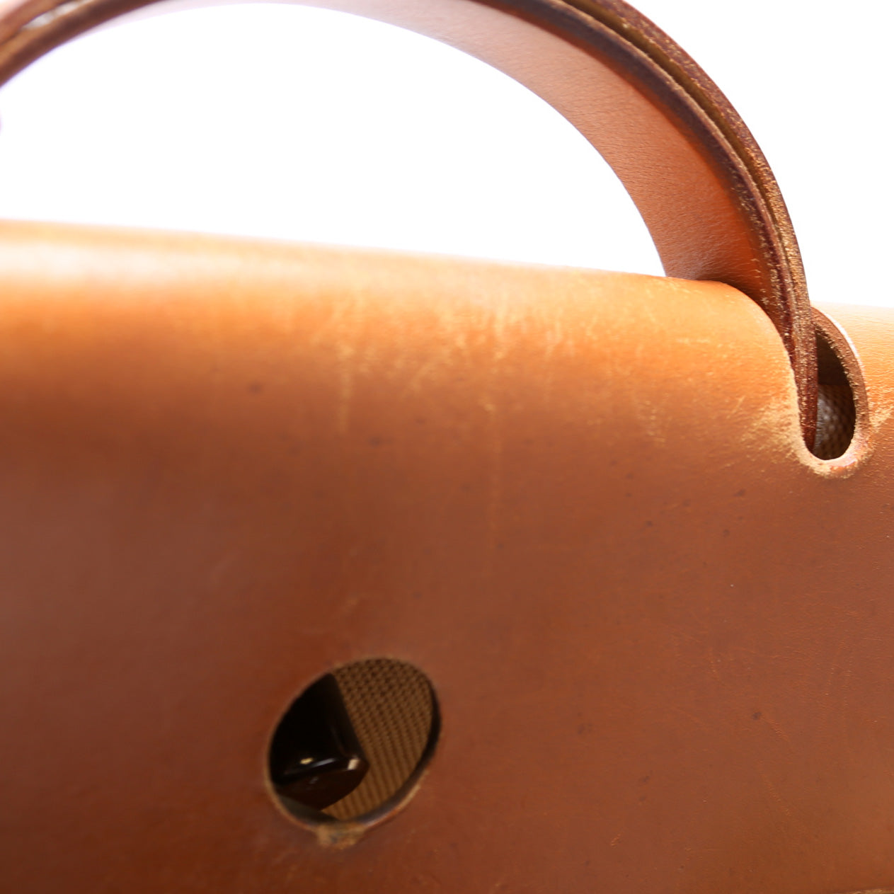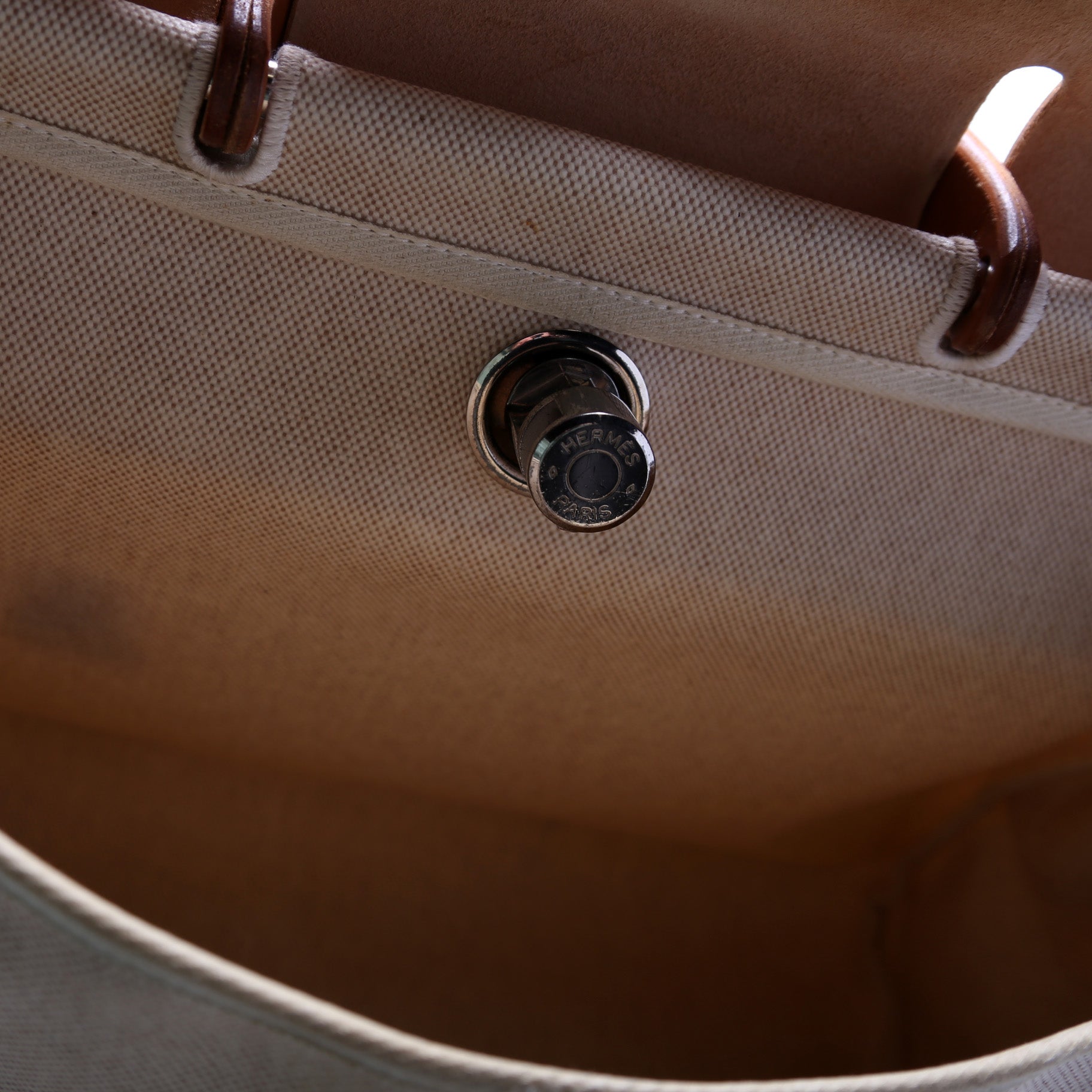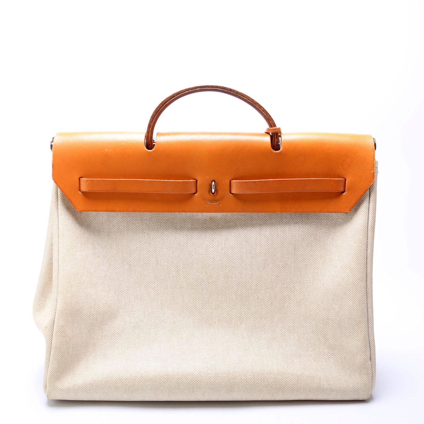 Exterior: The exterior canvas has minor discoloration throughout. The leather flat has scuffs and wear throughout.
