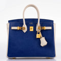 Hermes Birkin 25 HSS Bi-Color Blue Electrique & Craie Epsom Brushed Gold Hardware - 2016, X