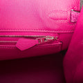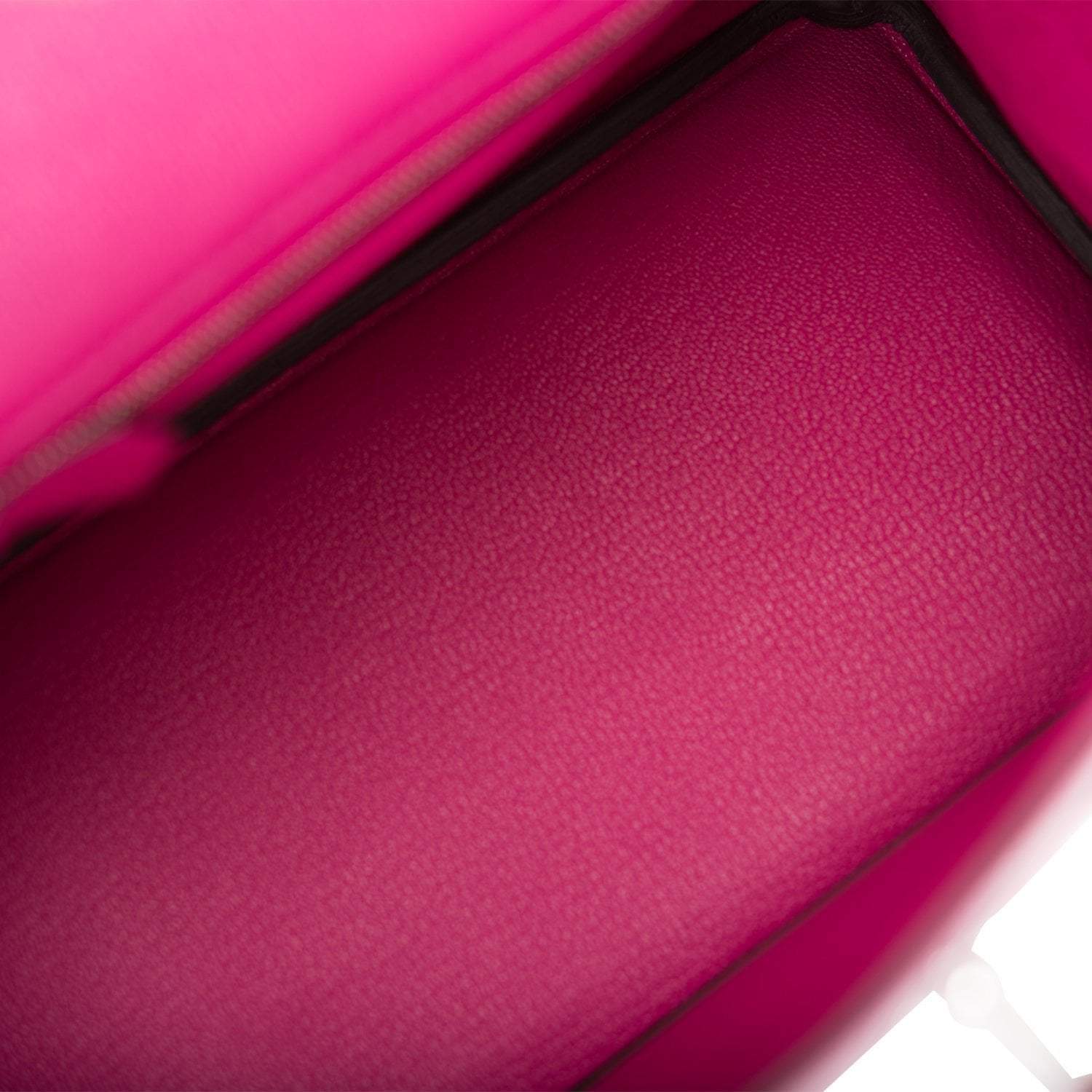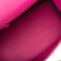 The interior is lined with Rose Scheherazade Chevre leather and includes one zip pocket with an Hermes-engraved zipper pull, as well as an open pocket on the opposite side for added functionality.