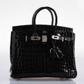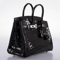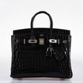 Hermes Birkin 25 Shiny Black Niloticus Crocodile with Palladium Hardware - 2019, D