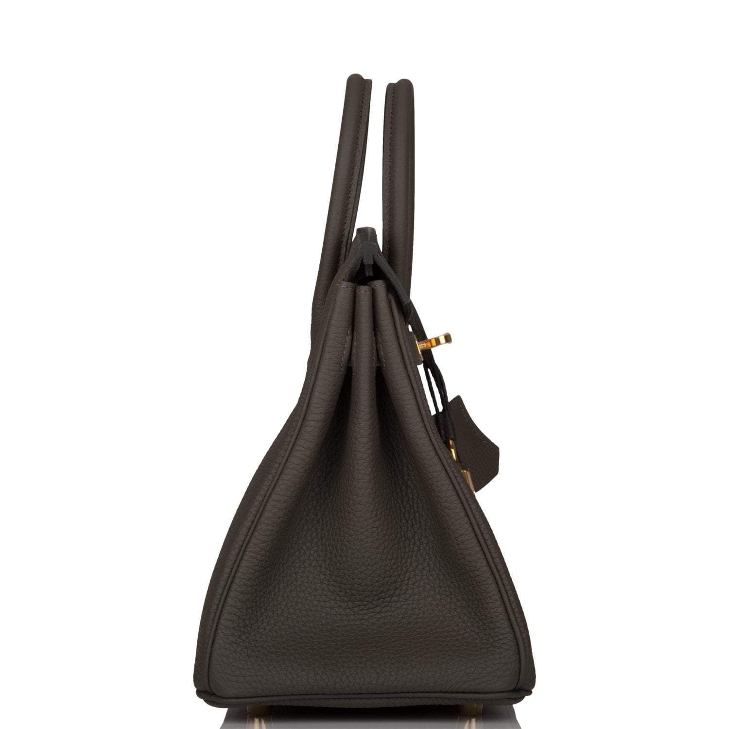 This Birkin is in Vert de Gris Togo leather with gold hardware and features tonal stitching, two straps with a front toggle closure, clochette with lock and two keys, and double rolled handles.