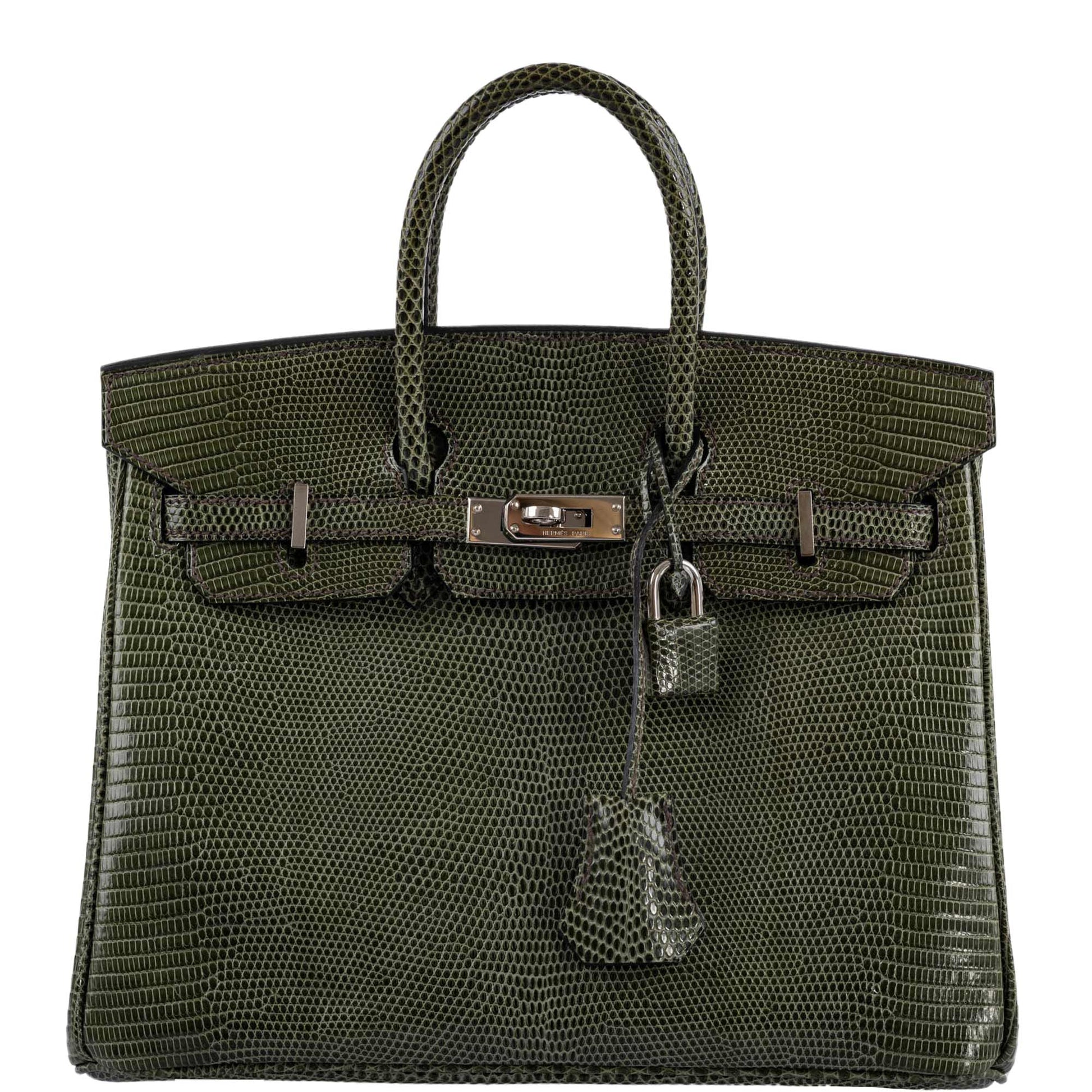 Hermes Birkin 25 Vert Olive Salvator Lizard with Palladium Hardware - 2008, L Square