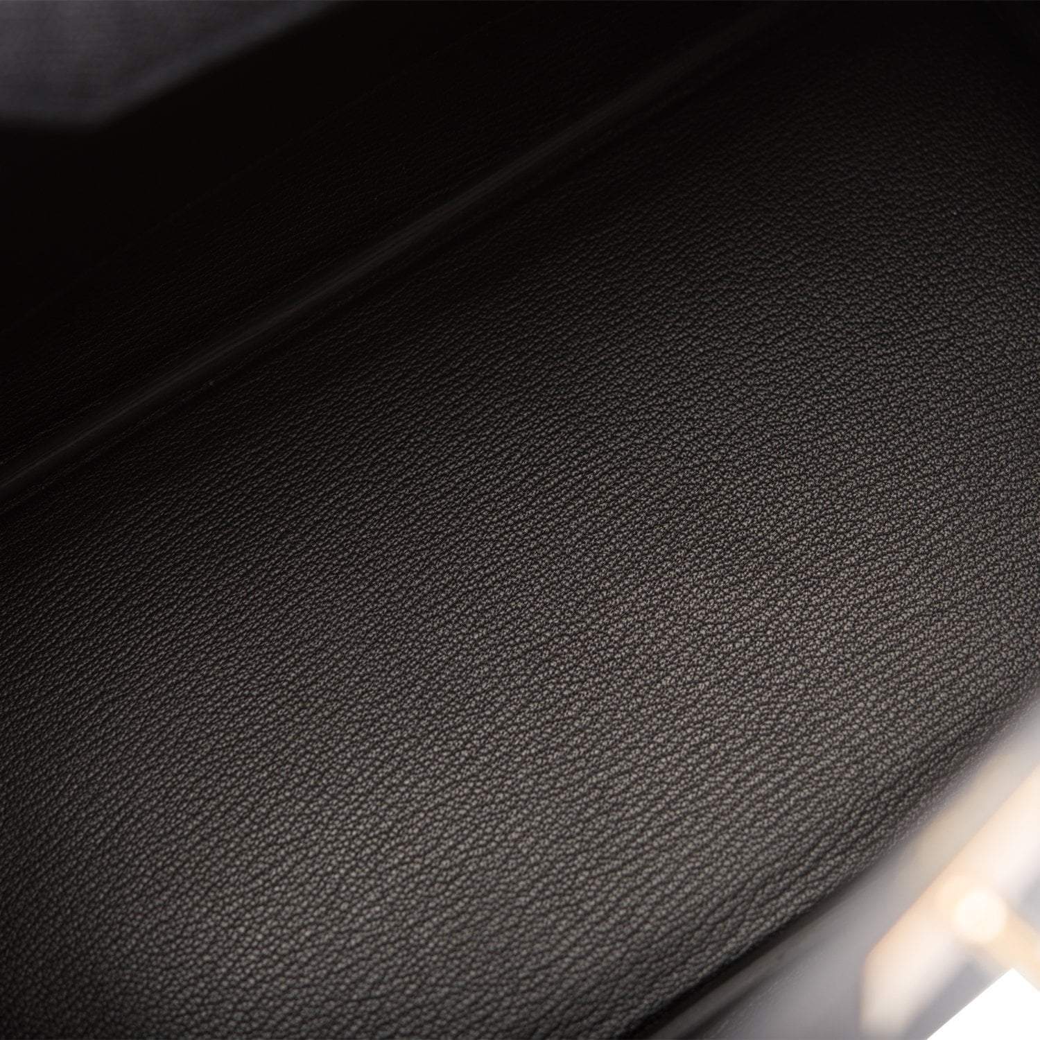 The interior is lined with black chevre and has one zip pocket with an Hermes engraved zipper pull and an open pocket on the opposite side.
