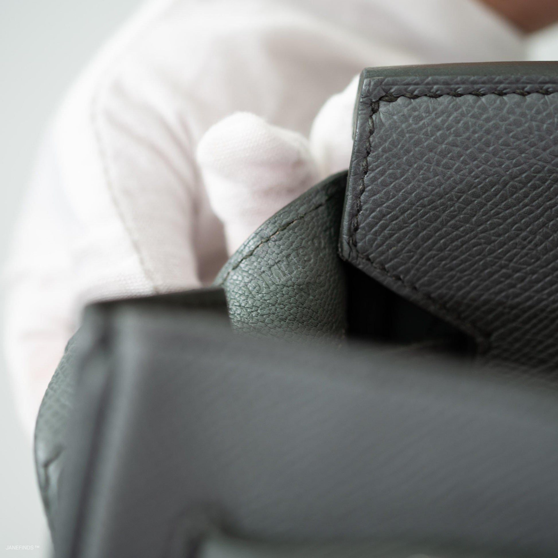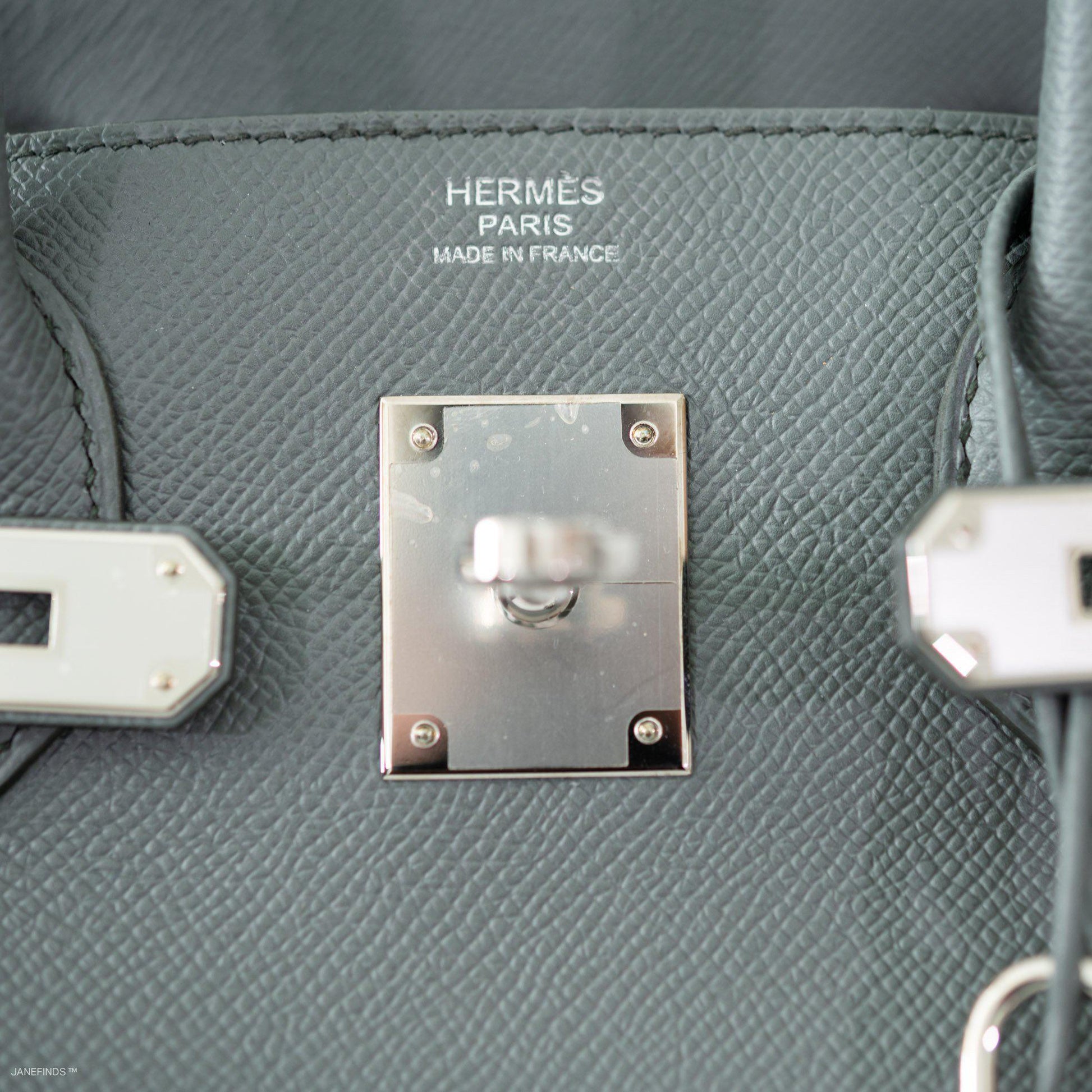 While Hermes is known for their stunning array of colors, their selection of grays and greens stands out. This 30cm Epsom leather Birkin is done in Vert Amande, a sophisticated shade that combines gray with green undertones, presenting a modern and elegant look. Paired perfectly with Palladium hardware, Vert Amande, which translates to Almond Green, was part of the Fall/Winter 2019 Hermes collection.