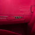The interior is lined with Framboise chevre, creating a luxurious contrast. It features one zip pocket with an Hermes engraved zipper pull, as well as an open pocket on the opposite side for added functionality.
