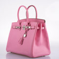 Though Hermès is renowned for its stunning array of colors, few are as coveted and iconic as 5P Bubblegum Pink. Often referred to as the "pinkest pink," 5P holds a special place among Hermès enthusiasts. Its contrasting Etoupe stitching makes it instantly recognizable. This rare shade recently made a comeback, but this 35cm Birkin in 5P Epsom is from the original release Paired with Palladium hardware, its vibrant yet delicate tone remains as captivating as ever.