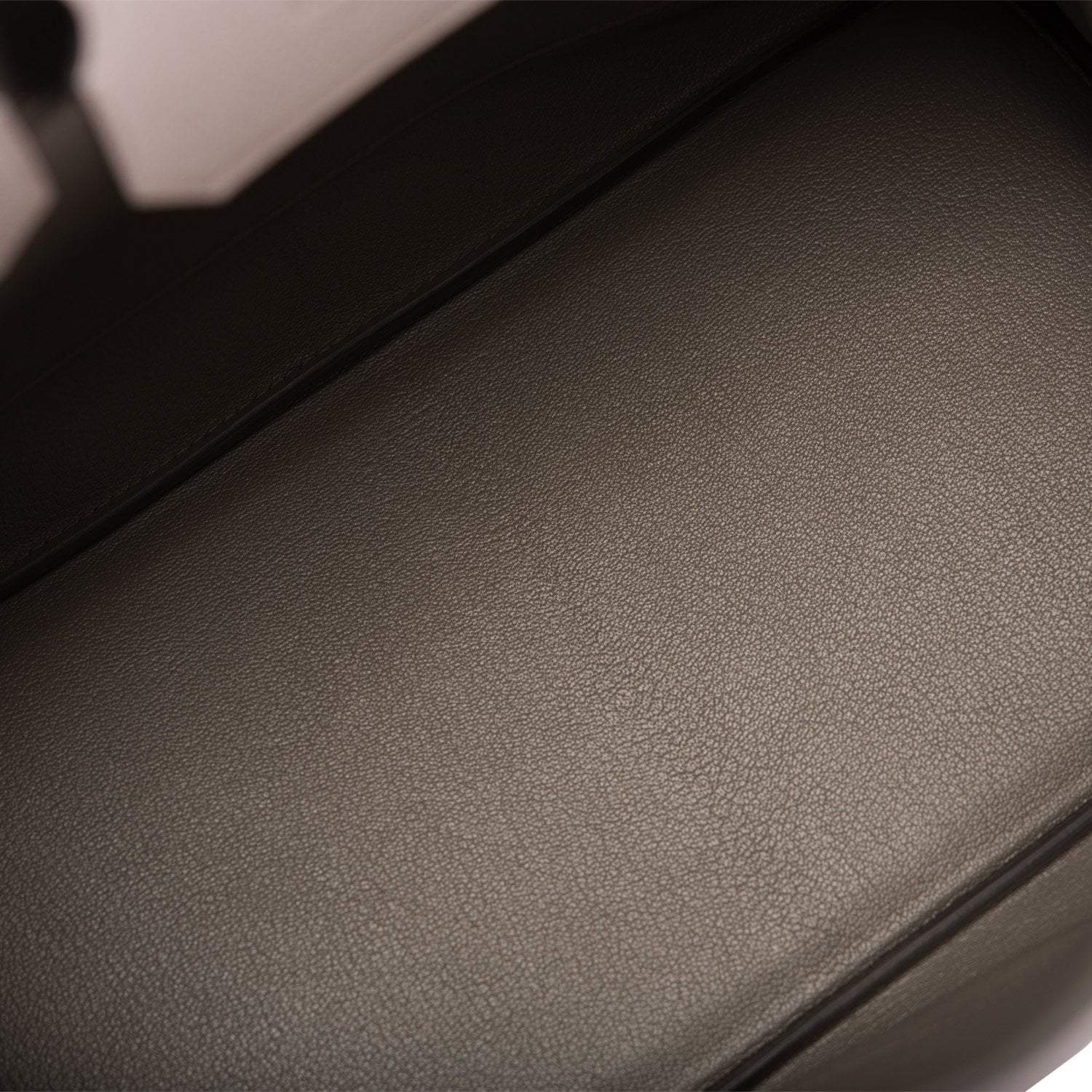 This stunning Birkin is made from Etain Togo leather with palladium hardware, featuring tonal stitching, a front flap, two straps with a center toggle closure, clochette with lock and two keys, and double rolled handles. The interior is lined with Etain Chevre leather and includes one zip pocket with an Hermes engraved zipper pull and an open pocket on the opposite side.
