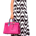 Few images of celebrities with Birkins are more iconic than those of Victoria Beckham (Posh Spice) attending one of her husband David’s soccer matches wearing a bright pink dress with a matching Fuchsia Ostrich 35cm Birkin. This example is a perfect match to that bag, an icon of the mid-2000s, which has been meticulously maintained. Rendered in the iconic 35cm size, this bright Fuchsia pink Birkin displays well-spaced quills and is paired with Palladium hardware for a striking look.