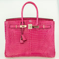 Hermes Birkin 35 Fuchsia Porosus Crocodile with Palladium Hardware - 2011, O Square