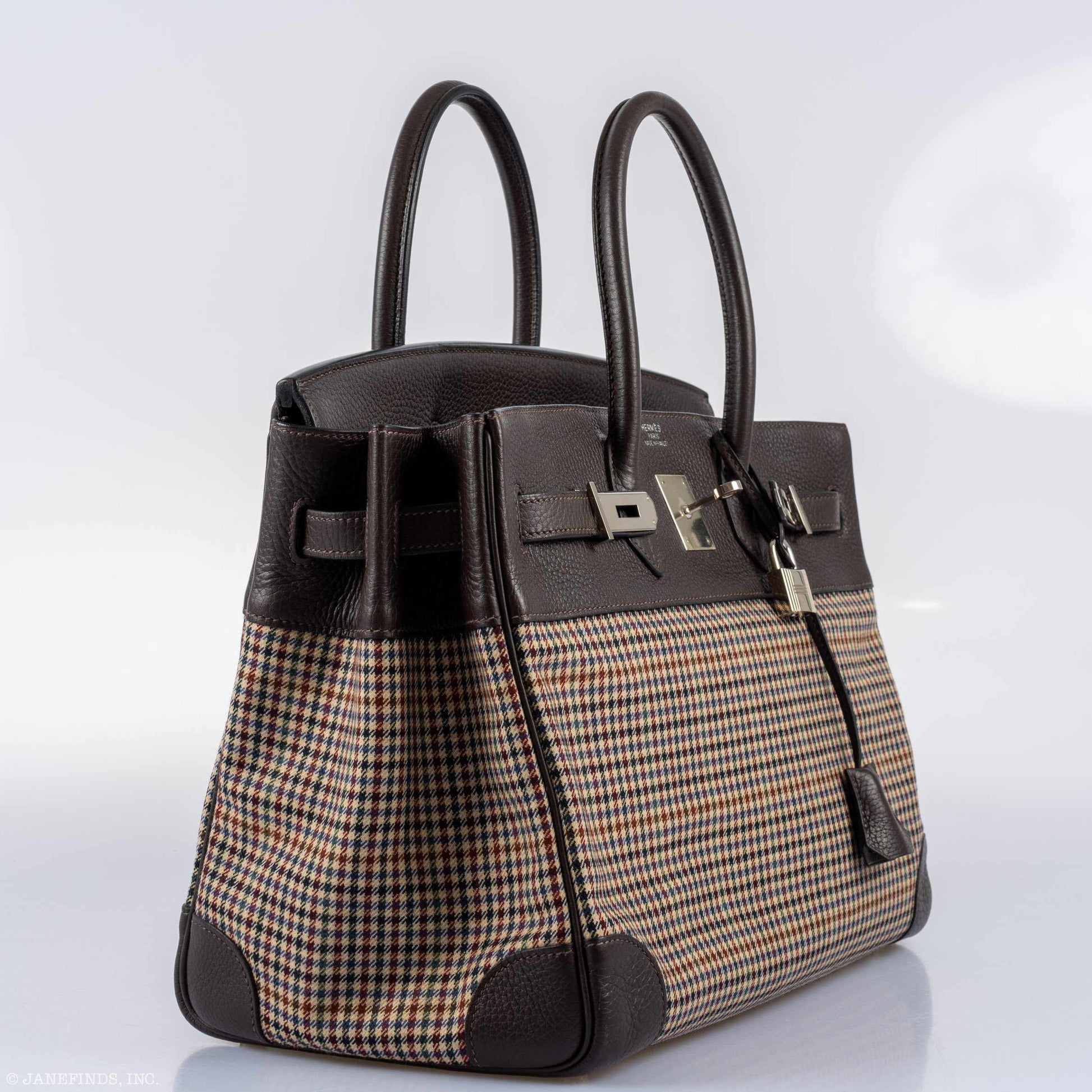 Hermes Birkin 35 Togo And Plaid Wool Lainage Palladium Hardware -Runway Bag