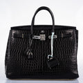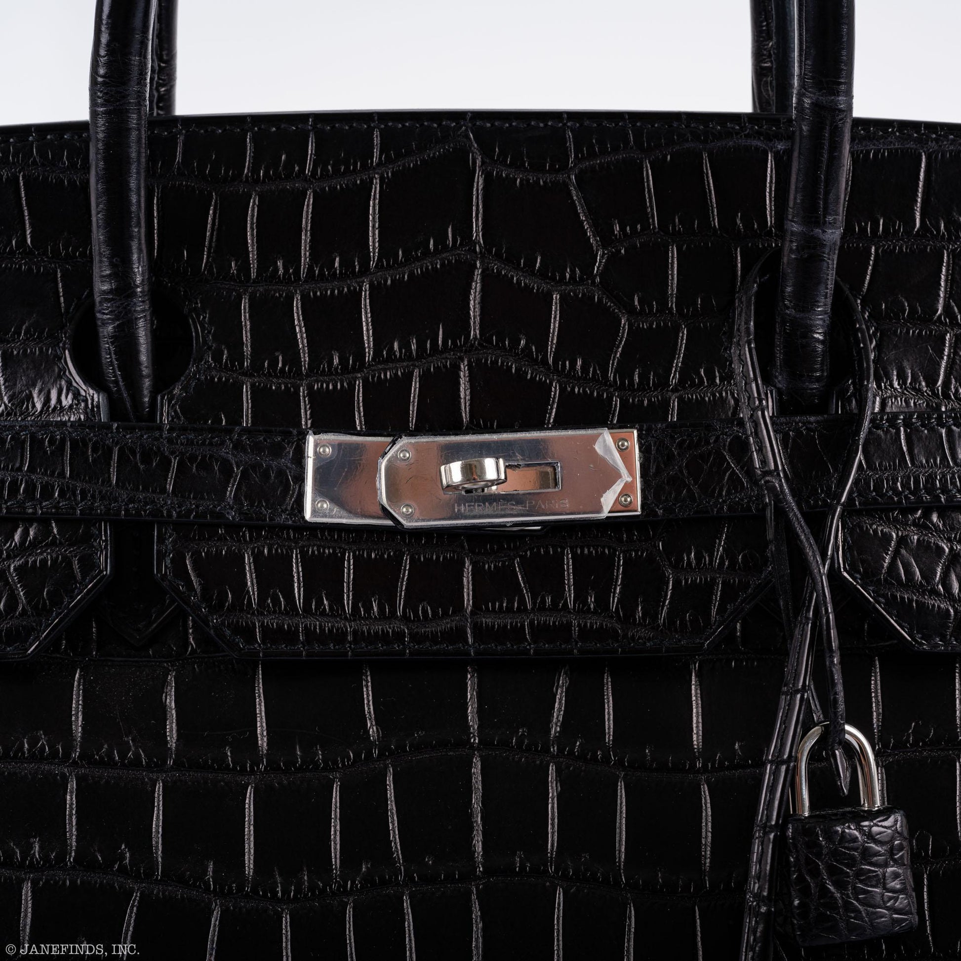 Hermes Birkin 40 Black Matte Porosus Crocodile Palladium Hardware