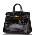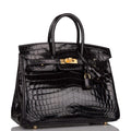 Hermes Black Shiny Niloticus Crocodile Birkin 25cm Gold Hardware