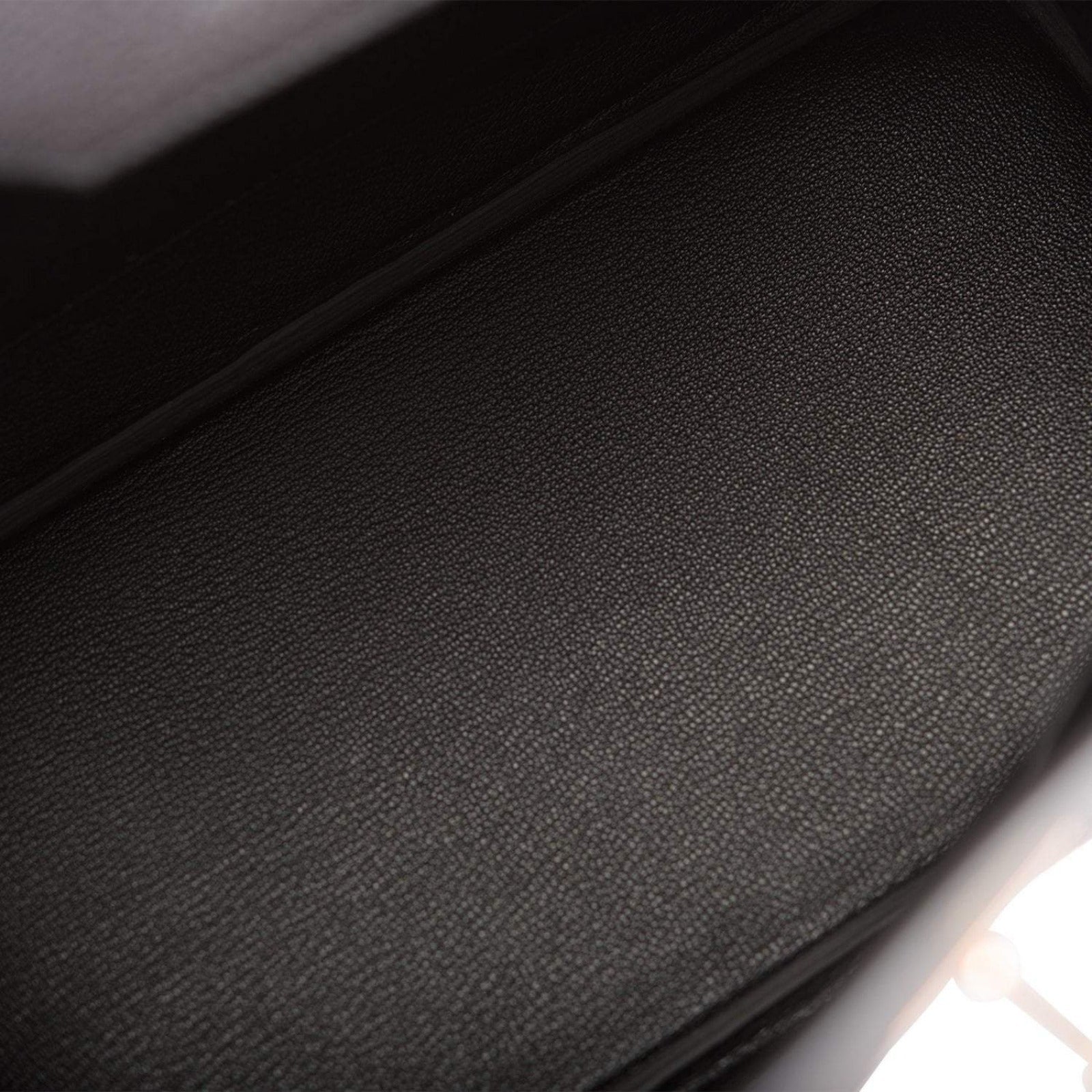 This Birkin is made from Black Togo leather with rose gold hardware, featuring tonal stitching, a front flap with two straps and a center toggle closure, clochette with lock and two keys, and double rolled handles. The interior is lined with black chevre leather and includes one zip pocket with an Hermes engraved zipper pull, as well as an open pocket on the opposite side.