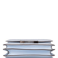 This Constance is crafted from Bleu Brume Swift leather with palladium hardware and features tonal stitching, a metal "H" snap lock closure, and an adjustable shoulder strap. The interior is lined with Bleu Brume lambskin and offers an open pocket on the front wall, a center divide, and a slit pocket on the back wall.