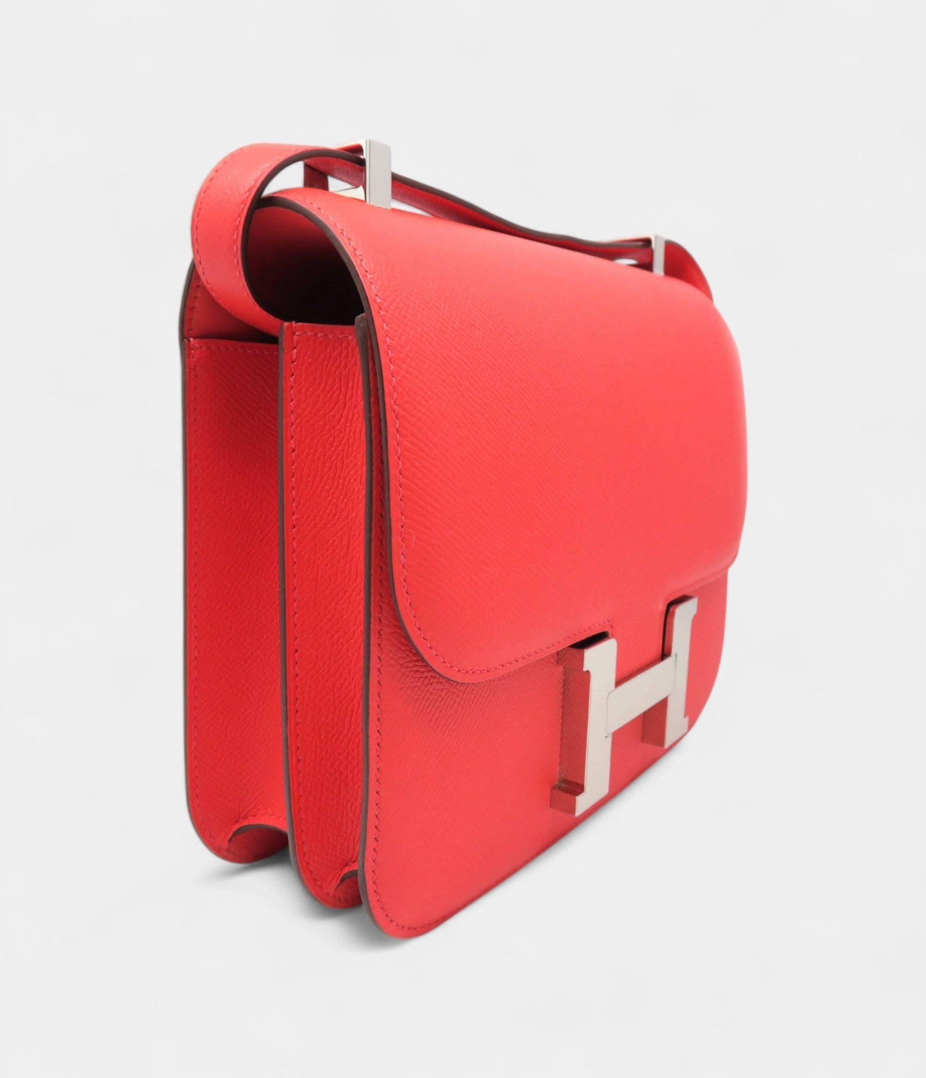 Hermes Constance 24 Rouge Tomate Veau Epsom Leather Silver Metal Shoulder Bag